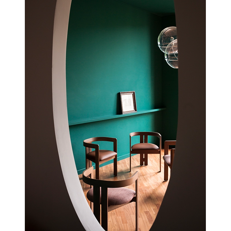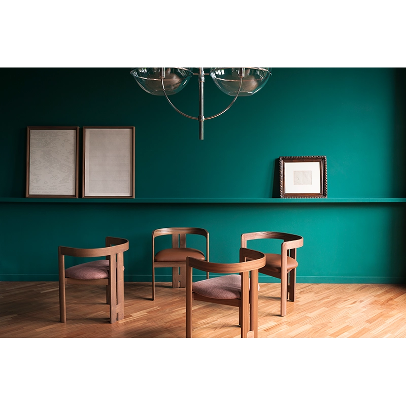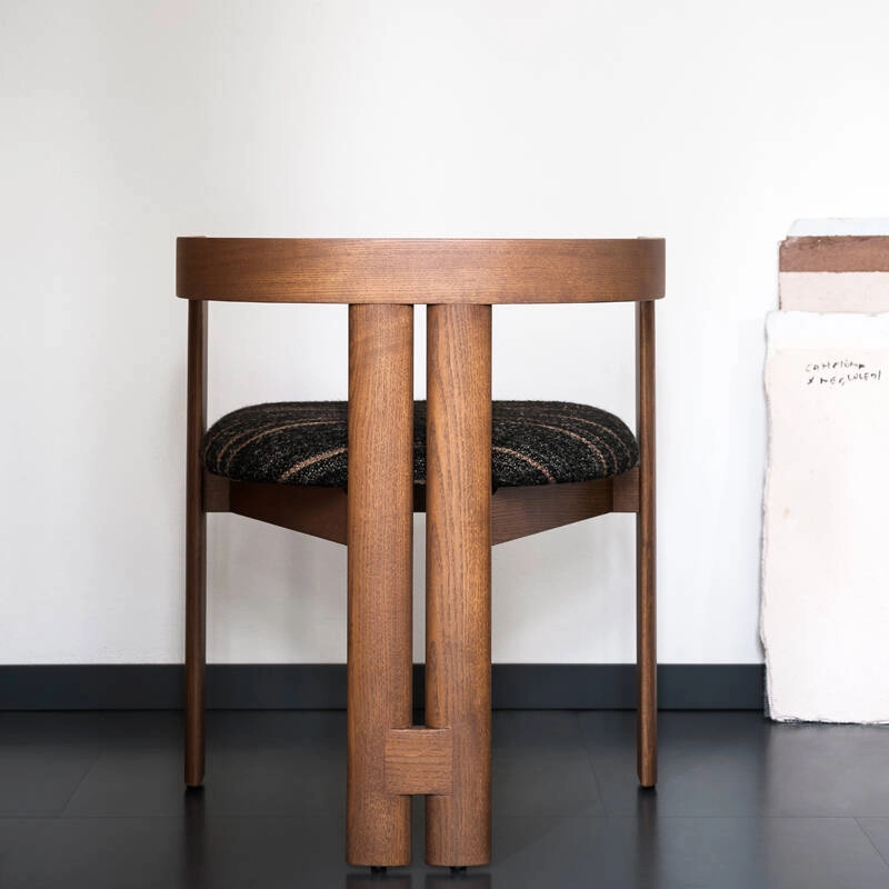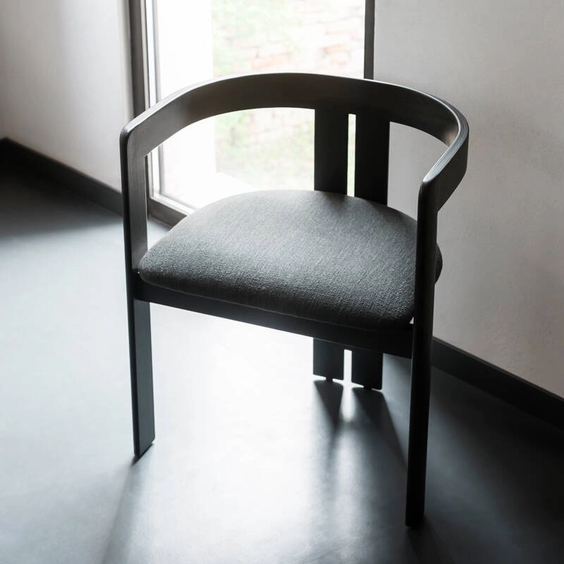 The small armchair Pigreco is the first product designed by Tobia Scarpa, conceived in 1959 as a final project for his architecture studies at the University of Venice. With this project, he wanted to create an object that conveyed a "feeling of space". The conditions necessary for the technical realisation of Pigreco led Scarpa to design a seat technically composed of four legs, two of them very close together, to guarantee the chair's solidity, while remaining faithful to the concept that originally inspired it: the triangle. Pigreco still stands out today thanks to its characteristic legs, joined by a simple horizontal element that increases the solidity of the seat structure. Tacchini presents the new edition of the Pigreco chair in new finishes and materials to adapt it to the context of today's homes. The curved backrest and triangular leg arrangement create a chair that's enveloping, graphic and perfectly balanced.