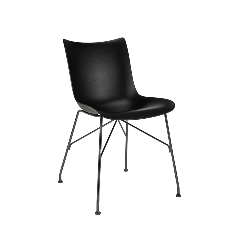 Designed by Philippe Starck for Kartell, theP/Wood chair is part of the Smart Wood furniture collection. Like the rest of the collection, the chair is characterised by its use of wood, combining timeless elegance with contemporary shapes. Using a special patented technique, the wood is actually moulded, allowing the panel to be bent as far as possible to create a seat shell with sinuous lines. The seat shell is combined with an airy, visually light steel base. Available in a range of wood and steel finishes, the Kartell P/Wood Chair is ideal for a contemporary dining room. It can be paired with the Small Q/Wood armchair and the Viscount of Wood table.
