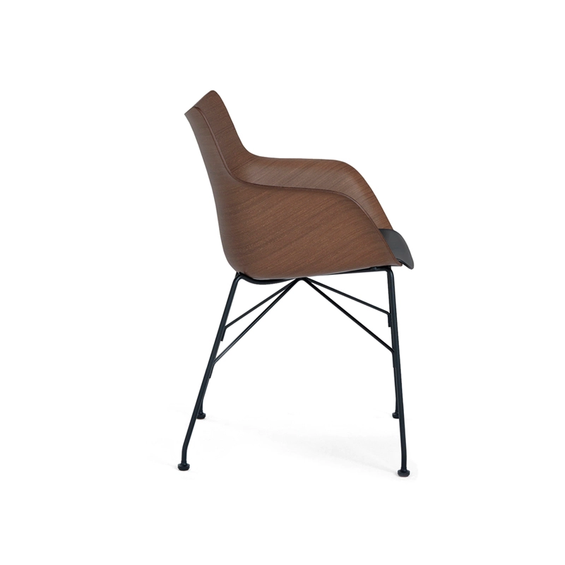 Designed by Philippe Starck for Kartell, Q/Wood is a small armchair in the Smart Wood collection, whose wraparound lines create welcoming armrests for maximum seating comfort. Using a special patented technique, the wood is actually moulded, allowing the panel to be bent as far as possible to create a seat shell with sinuous lines. The petit fauteuil Q/Wood is ideal both around a dining table and to accompany a small desk.