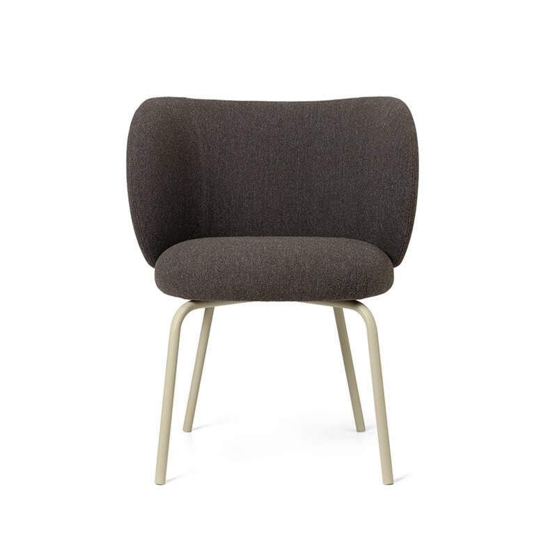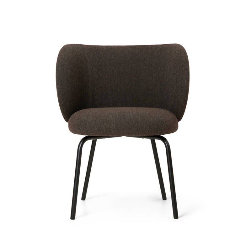 The small Rico armchair from Ferm Living, welcomes curves and volumes in a classic design defined by soft lines and an enveloping expression. With its 4-legged metal base, the Rico chair can be placed around a dining table, offering guests a comfortable and welcoming seat during long dinners, or used as an office chair. The small upholstered armchair Rico Ferm Living is available in a variety of high-quality fabric finishes.