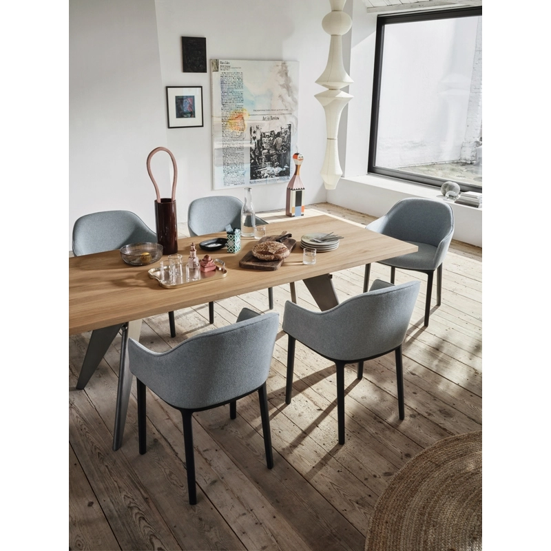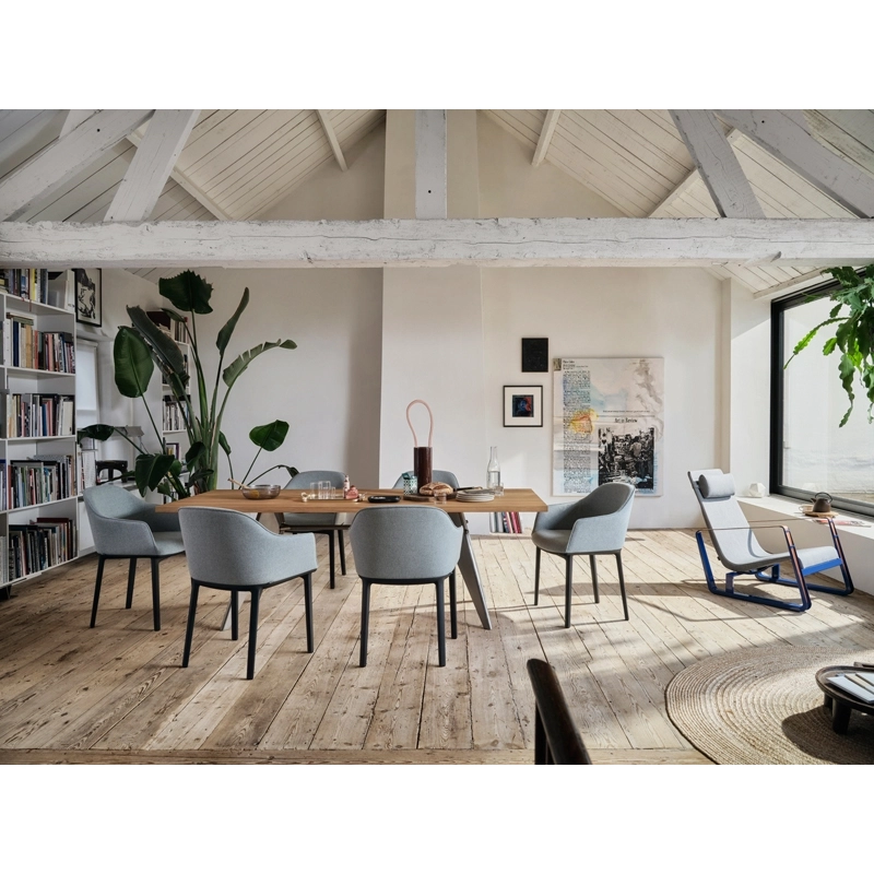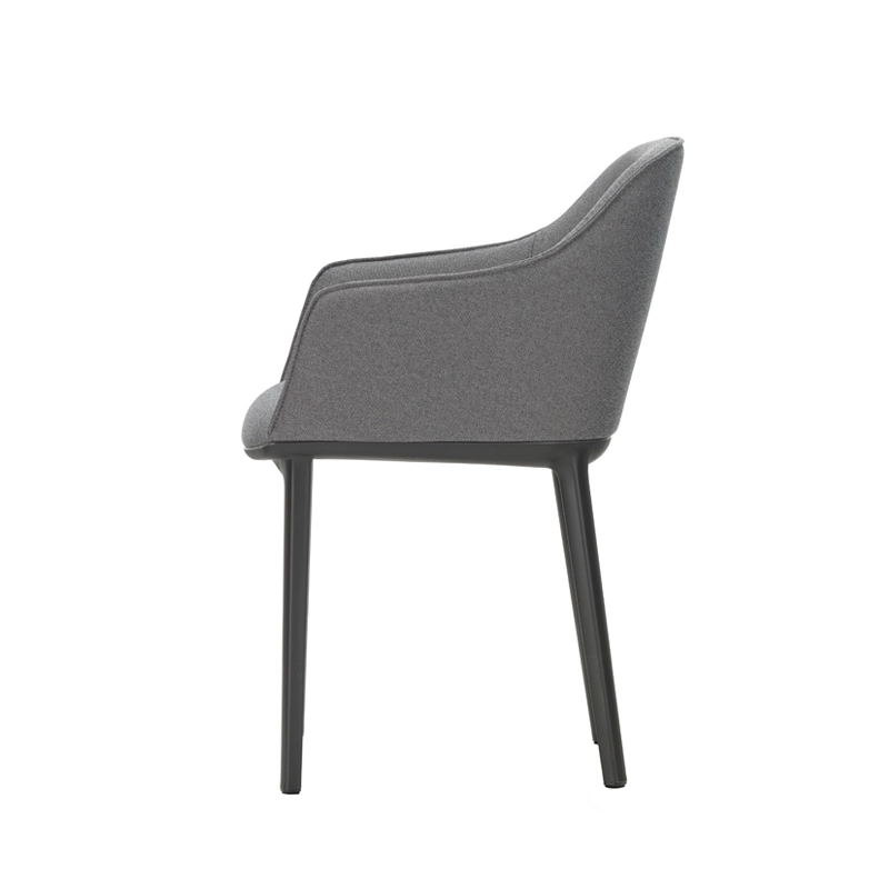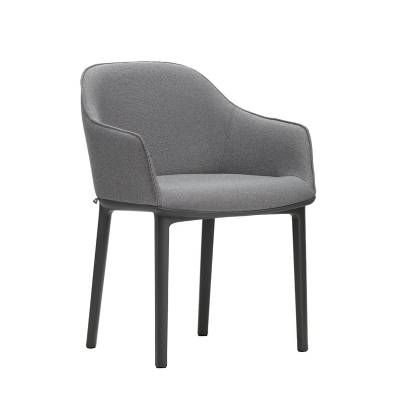 Designed by Ronan & Erwan Bouroullec for Vitra, Softshell armchair is an elegant and versatile chair. It is highly comfortable and can be placed in a conference room or office. Its soft, enveloping lines and generous, supple padding create both excellent levels of comfort and a sleek, appealing design. The chair legs are made of polyamide and the upholstery is made of Plano fabric. The vertical slats in the shell, which are hidden under the upholstery, adapt to the shape of the user to ensure optimum seating comfort even over long periods of time. Softshell evokes both conviviality and serenity, enabling it to be used in residential spaces around a dining room, or in public settings.