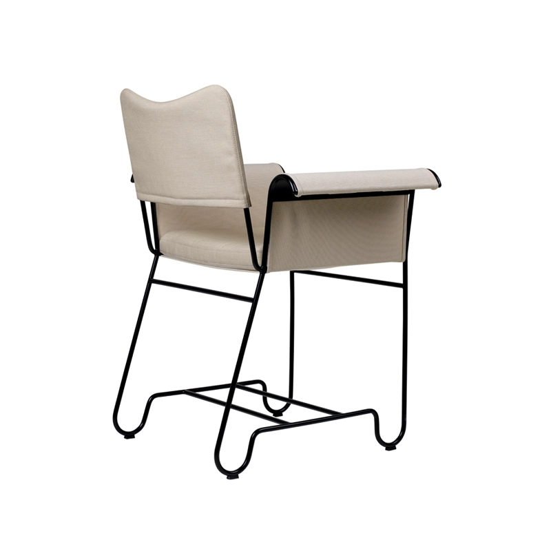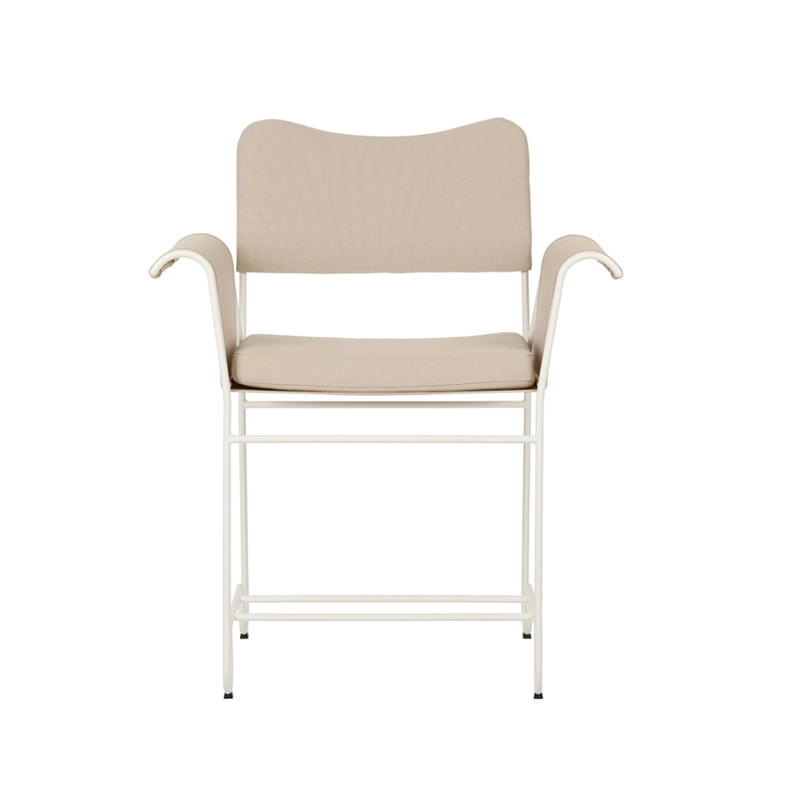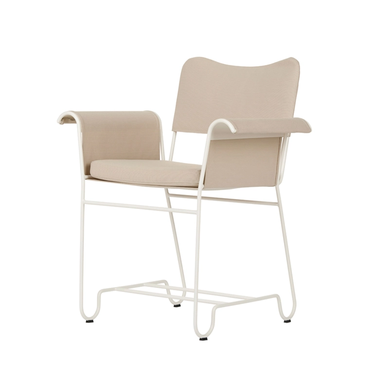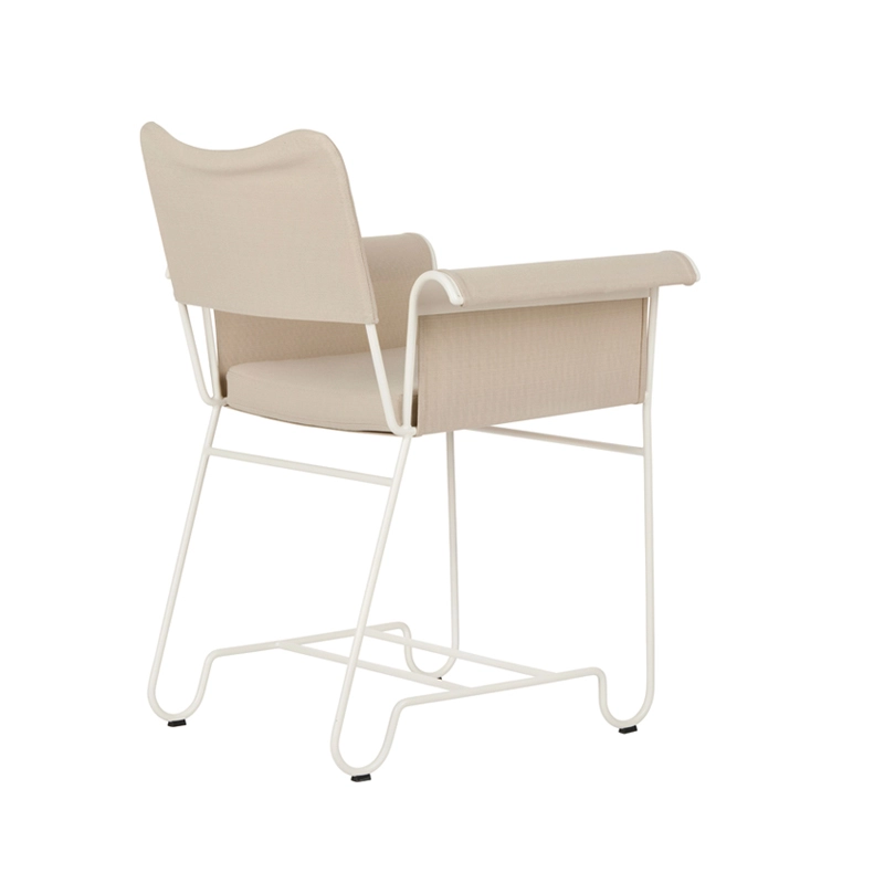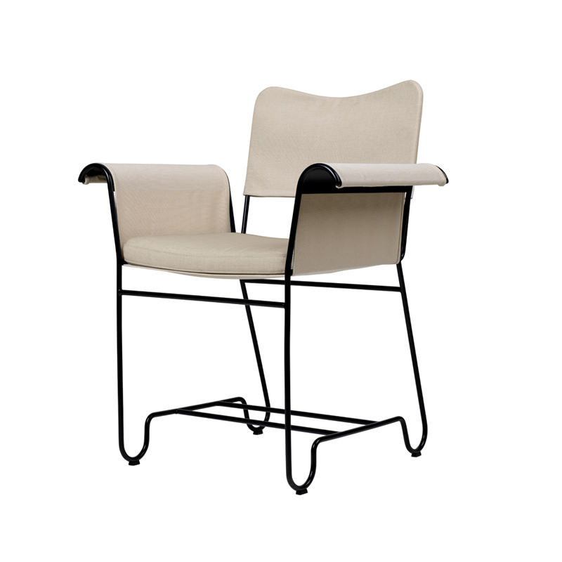 Created in the 1950s by designer Mathieu Matégot, the mobilier Outdoor Tropique collection captures the timeless elegance and exotic luxury of outdoor living on the French Riviera in the mid-20th century. More than 50 years later, Gubi is paying tribute to Mathieu Matégot with a new edition of one of his most famous collections. Developed shortly after his return from the Second World War, Tropique was one of his key collections that helped Mathieu Matégot establish his reputation as a designer. Out of production for decades, the Tropique collection is reborn for the 21st century, giving a new generation the chance to live "la dolce vita" as imagined by Mathieu Matégot. Combining material simplicity with a decadent aesthetic, the Tropique collection includes two small dining armchairs and a table. The structure of each piece is made from stainless steel tubing, with a distinctive curve at the legs that unites the collection into a coherent whole.  For the Tropique chairs, the seat and back are now made from a durable and flexible outdoor fabric. Suspended like a hammock from the frame, the seat is enveloping and easy to remove. The backrest is padded with foam and a separate cushion provides optimum comfort for the seat. The petit fauteuil Tropique is available with or without fringes on the armrests.