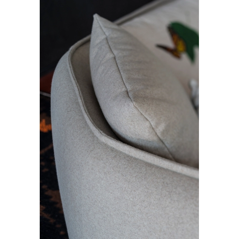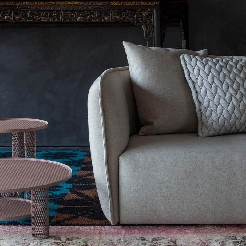 Chamfer, French for "chamfer" - refers to the joinery term for a felled edge. This architectural detail is the inspiration behind the shape of the sofa and characterises the whole collection. Although literally the word refers to a gentle angle created by a 45° cut in a right angle, its expression here is a double broadening of perspective, both aesthetically and functionally. On the outside, the chamfer softens the shape of the backrest and gives it a sculptural appearance. Inside, the angle creates a comfortable and inviting space, suitable for both domestic and public use. Versatile, refined and flexible, this