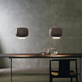 Foscarini produces a collection of hanging units in varnished and tinted blown glass, featuring three models in which colour plays an integral part in the shape: the large version is in orange the small version is in grey, and the longer one is in green. Designed by Ionna Vautrin in 2011, the Chouchin series is inspired by Japanese bamboo lanterns generally used as lucky charms to hang in the home. The three models come in warm colours and provide gentle, downward light to create a soft and delicate atmosphere in your living room. Following on from the success of the famous Binic lamp, Ionna Vautrin has created a combination of pendant lamps that enhances the features of your dining room table with simplicity and softness.