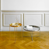 Evoking oriental tea services, Habibi is a series of small coffee tables and side tables, created by Philipp Mainzer for E15. These tables are reduced to their simplest forms: the top rests gently on a light structure and can also be used independently.Both functional and elegant, Habibi is available in three sizes and three finishes: stainless steel, copper and brass. Produced by hand, each piece is unique and oxidises over time, producing a beautiful patina unless treated. The versatile Habibi collection offers several possibilities for use in the living room, bedroom or entrance hall, alone or in compositions of several elements.