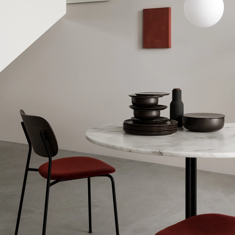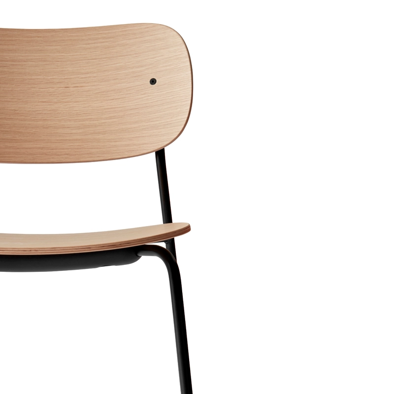 chaise Co Chair combines a lightweight silhouette with great seating comfort. In addition to these features, they can be stacked in towers of up to 15 chairs. Visually, the contoured shape and warm materials are typical of Norm Architects. The version with armrests provides additional comfort and enables the chair to be hung on a table for easy cleaning.