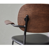 chaise Co Chair combines a lightweight silhouette with great seating comfort. In addition to these features, they can be stacked in towers of up to 15 chairs. Visually, the contoured shape and warm materials are typical of Norm Architects. The version with armrests provides additional comfort and enables the chair to be hung on a table for easy cleaning.