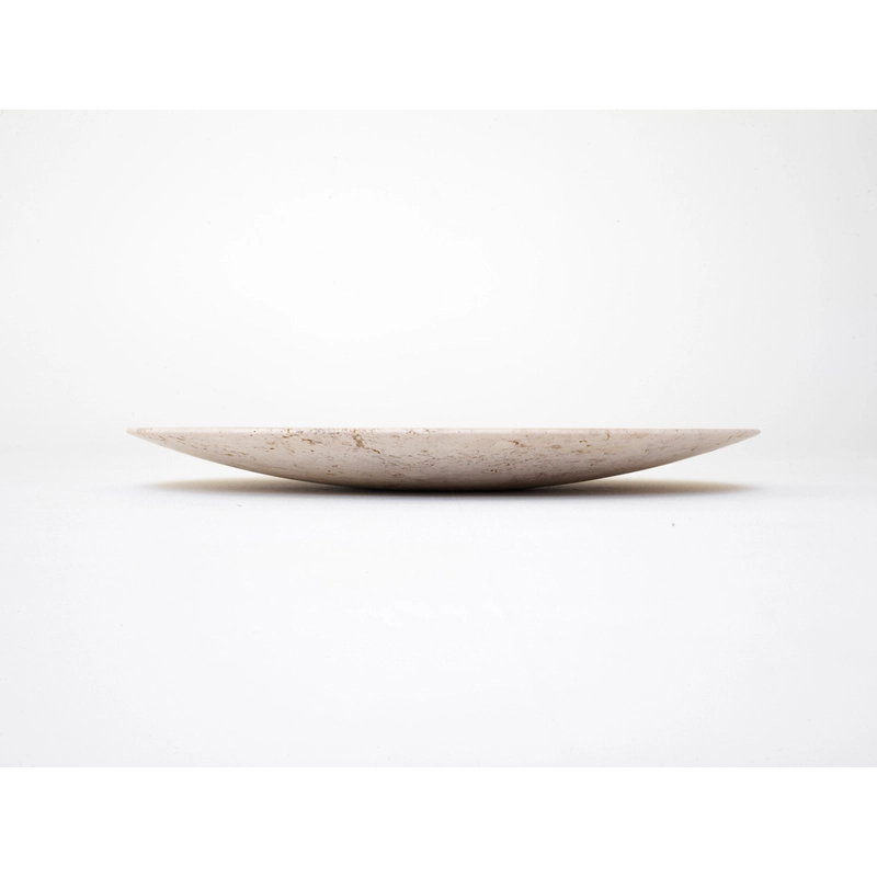 Designed by Space Copenhagen for And Tradition, this hand-polished centrepiece is part of the Collect series, a line of beautifully crafted upholstery and homeware. Made from beige travertine stone, each cut is a unique textured piece with its own natural pattern.