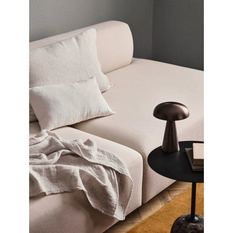 Designed by Space Copenhagen for And Tradition, this wool blanket, made from 100% extra-fine merino wool, sports a two-tone colouring that skilfully interweaves contrasting hues. The different shades on the front and back offer the opportunity to change your look. Joined with thin stitching, then heat-treated, the result is a blanket with an ultra-soft, rumpled appearance.