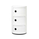 These modular storage units, known as Componibili, created by Anna Castelli Ferrieri in 1968, have been designed to meet a variety of use requirements and so find their place in every room of the house: the bathroom, bedroom, kitchen or living room. Well thought out, the Componibili modular units meet a legitimate need for storage and can be adapted to any use. The key idea is the elementary but solid superimposition of the various Componibili blocks, which, by simply fitting together, make up highly practical storage units. This moulded plastic cylinder, with its sober, functional lines, symbolises the breakthrough in design that took place in the 1960s. The storage furniture Componibili will quickly become a growing success thanks to its extreme functionality. Democratic, accessible and bold, Componibili responds fully to the needs of a new society taking shape. Componibili by Kartell so meets a variety of use requirements, and is available in seven different colours. An iconic object from Kartell, Componibili has been making its mark ever since its debut at the Milan Furniture Fair in 1927. Flexible and functional, Componibili has been produced for over thirty years and has received multiple accolades for the value and innovation of the project. The Componibilis are exhibited at the Museum of Modern Art in New York and the Centre Pompidou in Paris. Thanks to Kartell, plastic has become precious, noble and refined.