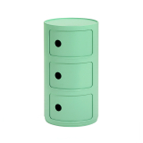 The famous Componibili, produced for over 50 years, is now available in a new soft touch effect material: bioplastic. Componibili is an icon of the Kartell brand, establishing itself from 1968 onwards as a true design classic. This piece of furniture can be used in any room in the house, as well as outdoors. Kartell is launching a veritable green revolution by presenting the 1st piece of furniture made from bioplastic, Componibili Bio. This plastic is made from renewable raw materials which, with the addition of micro-organisms, form a plastic-like material. The Componibili Bio is therefore a piece of furniture made from 100% natural and 100% biodegradable materials. What's more, bio-plastics have the same thermomechanical properties as traditional plastics. Many years of research are behind this material, used in the Componibili Bio, highly technological product of the new ecological chemistry. Kartell, always attentive to the ecological processes of sustainable development for the manufacture of certified 100% recyclable products, continues its research in the world of bio and today results in the creation of an ecological and biodegradable material, capable of satisfying both the functional and structural requirements of a design product. This revolutionary new material is the future in terms of ecology and the environment. Experimenting with new technologies, through innovation in the use of plastics, has always been one of Kartell's most important focuses. Indeed, Kartell president Claudio Luti explains, "Research into bioplastics joins our path of innovation and is part of the 'Kartell loves the planet' project aimed at improving best practice in sustainable development." I'm already looking forward to exploring the future and, above all, discovering technologies that are not only new, but completely different from the products we've produced to date. The Componibili Bio is as functional as the original version, designed to meet a variety of use requirements and to find a place in every room of the house.