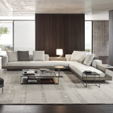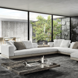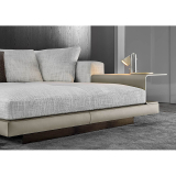 Minotti also includes, in addition to deeper chaise longues, elements with circular lines that can be combined with the sofa like atolls.