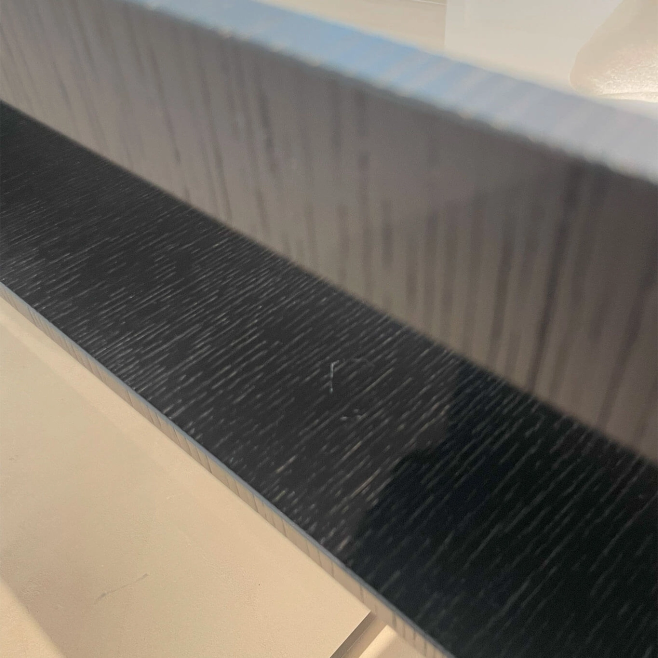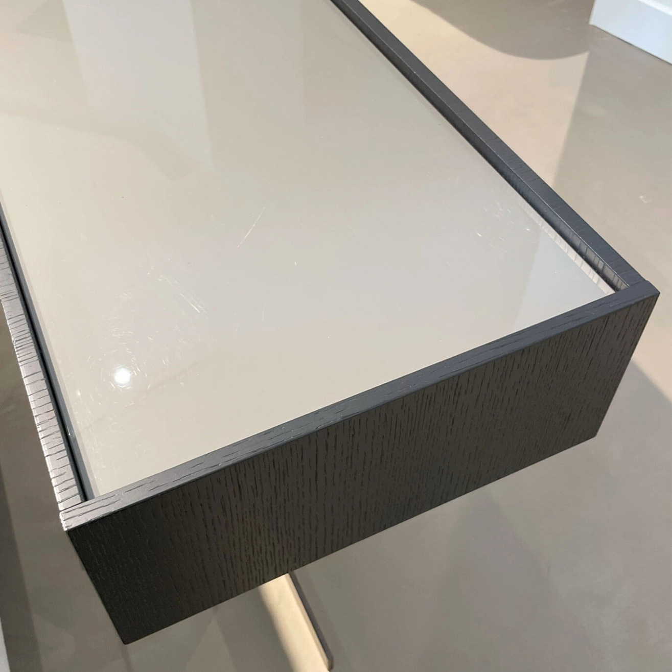 Fruit of the collaboration between the famous designer Rodolfo Dordoni and the Italian house Minotti, the Close console embodies a contemporary vision of luxury, all in restraint. This sophisticated piece combines geometric rigor and warmth of materials, offering a strong presence, but never ostentatious. Its structure in Moka-stained oak interacts with finesse with a shiny lacquered top in Clay, whose surface subtly captures the light. Everything is based on a base in bronze satin metal, which adds a precious touch without ever weighing down the whole. The balance of materials and volumes reveals a controlled aesthetic, both sober and deeply refined. Thought as a link between functionality and author design, this model ofoccasion integrates naturally into a sophisticated universe: in an entrance, behind a sofa, or as an accent piece in a night space. It is the reflection of a discreet and timeless art of living, specific to the universe Minotti.