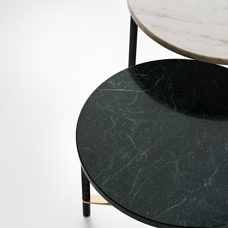 Created to complement the Cookies coffee table, Cookies Circle is an elegant side table that stands out for its high-quality craftsmanship with luxurious materials. It features a VerdeAlpi, Calacatta Vagli Oro or Bianco Statuario marble top and a hand brushed black anodised aluminium and bright brass base. Cookies Circle by Gallotti & Radice is available in two sizes that can be combined or used on their own.