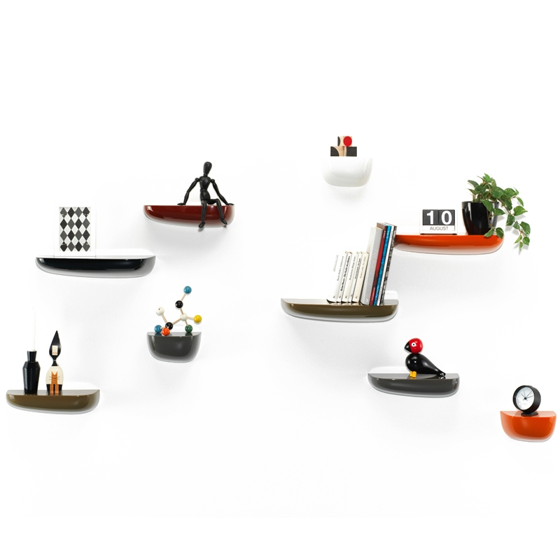 Created by the Bouroullec brothers, Corniches emerged from the need for small spaces in which to spontaneously store belongings. "We need small, informal storage spaces on a daily basis, in the same way as we hang our things on a rock protruding out from a cliff before diving into the sea." explains Ronan Bouroullec. This is why Corniches are neither standard shelves nor simple horizontal surfaces, but rather individual, isolated protrusions in the environments we create. Whether as a key rack beside the front door, a spot to put the soap dispenser in the bathroom, a display stand for small collections of objects, or as a large feature, Corniches represent a new way to use the walls in your living space. Presented by Vitra at the 2012 Milan Furniture Fair, Corniches can be displayed according to your own inventiveness, for example by displaying a series of them on a wall in your living room or bedroom, or individually in your hallway.