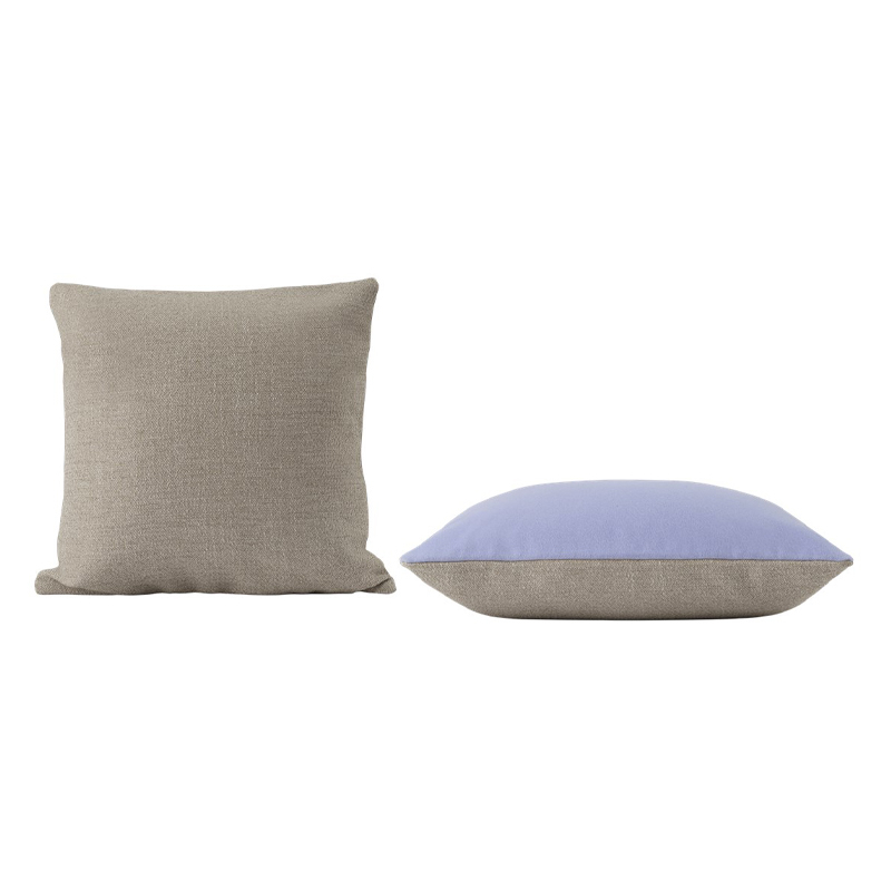 Mingle by Muuto is a collection of cushions where contrasts harmonise in a beautiful mix of colours and materials. Reversible, Mingle cushion changes expression depending on whether it's positioned on one side or the other. It is made from two different fabrics, one with a textured surface and the other smoother. The Mingle cushion by Muuto is available in two sizes and many colour combinations, which work really well together.