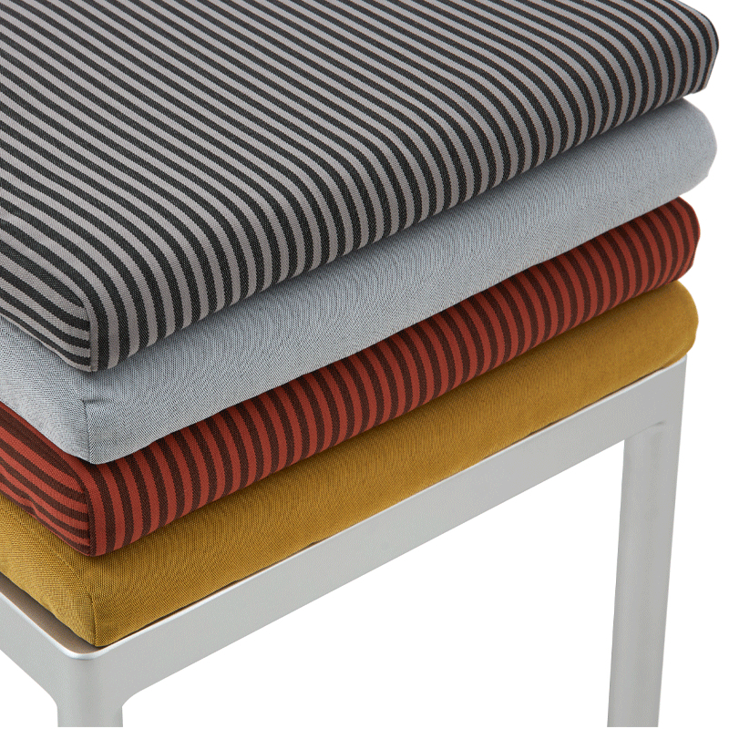 cushion Type effectively resists bad weather and UV rays, preserving its brilliant colour over time. Available in a variety of colours and striped patterns, the Type