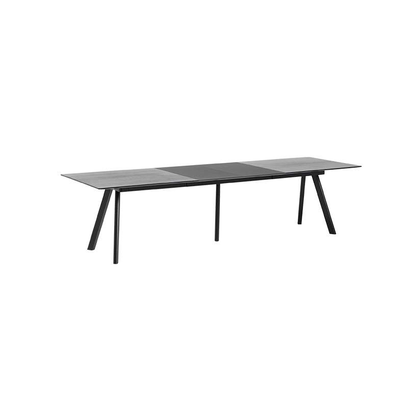 Part of the Copenhagen collection designed by Ronan and Erwan Bouroullec, the table CPH 30 Extendable features the same sloping legs and strong character characteristic of the series. Nevertheless, this table stands out for its extensible design. Thanks to the table's central sliding mechanism, extensions can be easily inserted to enlarge the table-top to the desired size. The flexible length makes it suitable for offices or public environments, as well as for domestic spaces. Edited by Hay, the table CPH 30 Extendable features an oak base available in a range of finishes and a wood veneer, laminate or linoleum-covered top. It is possible to insert up to 4 extensions on a table. From 3 or more extensions, it is recommended to use the extra foot available. Extension and support foot are sold separately.
