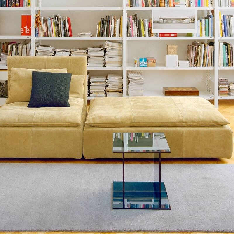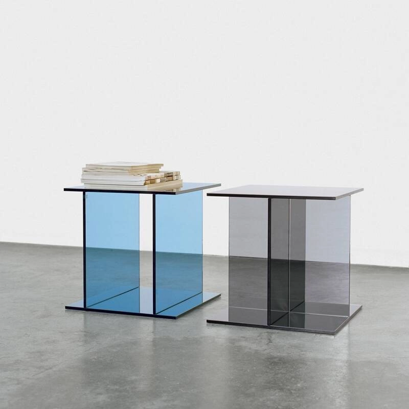 Philipp Mainzer has designed for the E15 brand a series of small tables made of coloured glass: Drei and Vier. Made up of four glass panels, the Drei pe ... Learn more