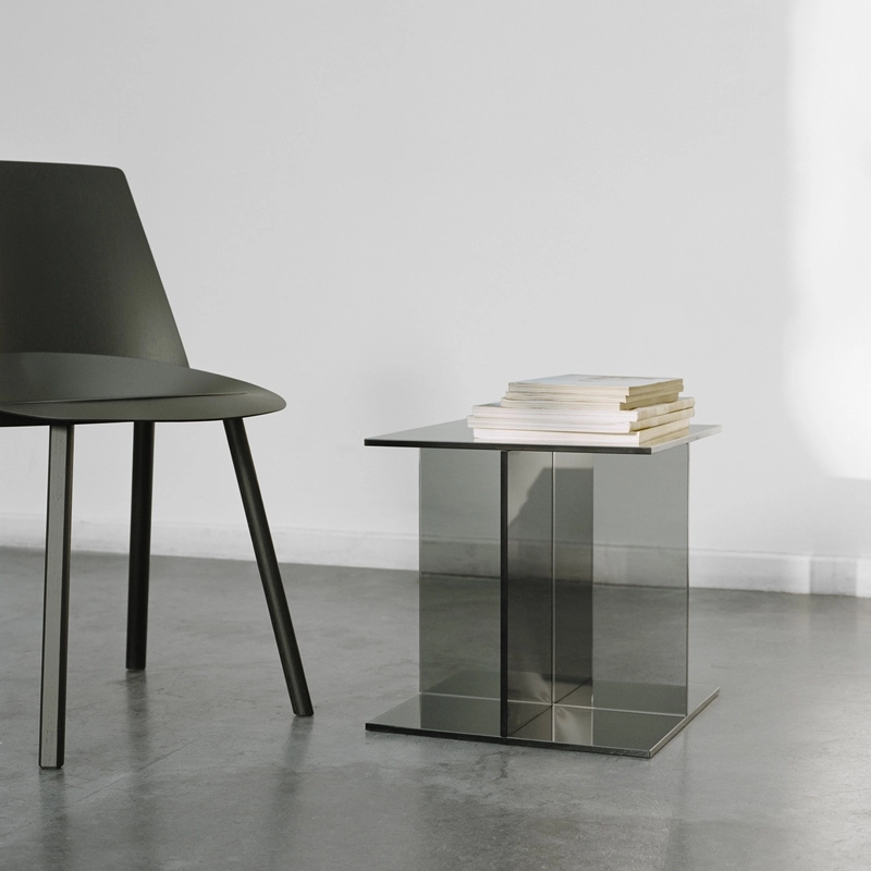 Philipp Mainzer has designed for the E15 brand a series of small tables made of coloured glass: Drei and Vier. Composed of four glass panels, the Drei version can be used in any position, in a nod to the refined shapes of the Bauhaus and the Ulm stool. Designed after the Drei, the Vier table is made from five pieces of glass and can be used for storage thanks to its symmetrical base cut into four parts.