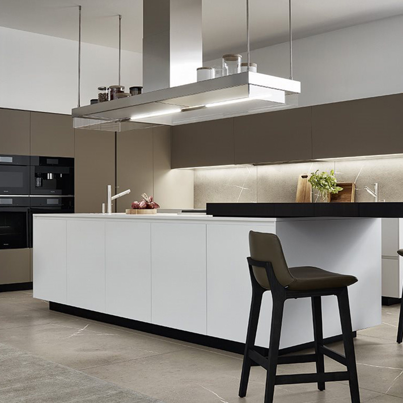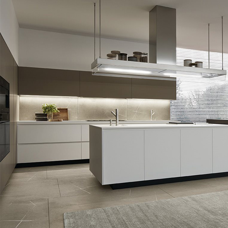 Poliform features a rigorous design for a new definition of the kitchen. A project with “minimal” formal connotations: each functional unit is reduced to the purest design, to its most essential form, while maintaining a high capacity for work. The aesthetic conception of the