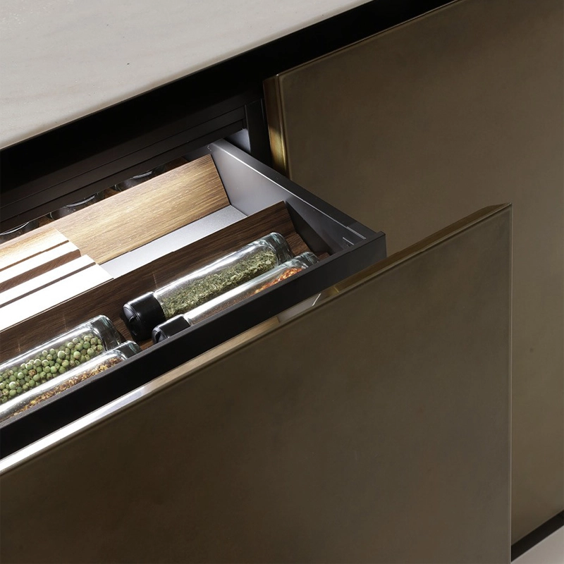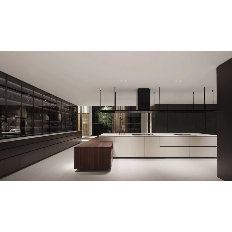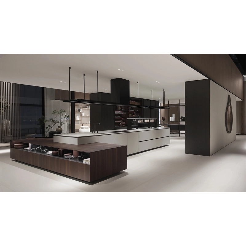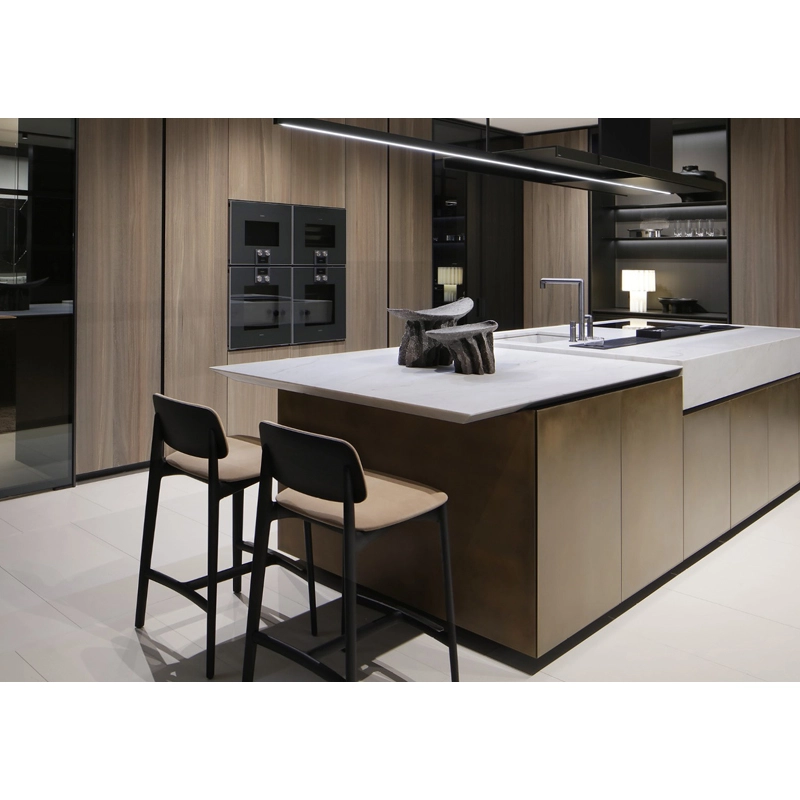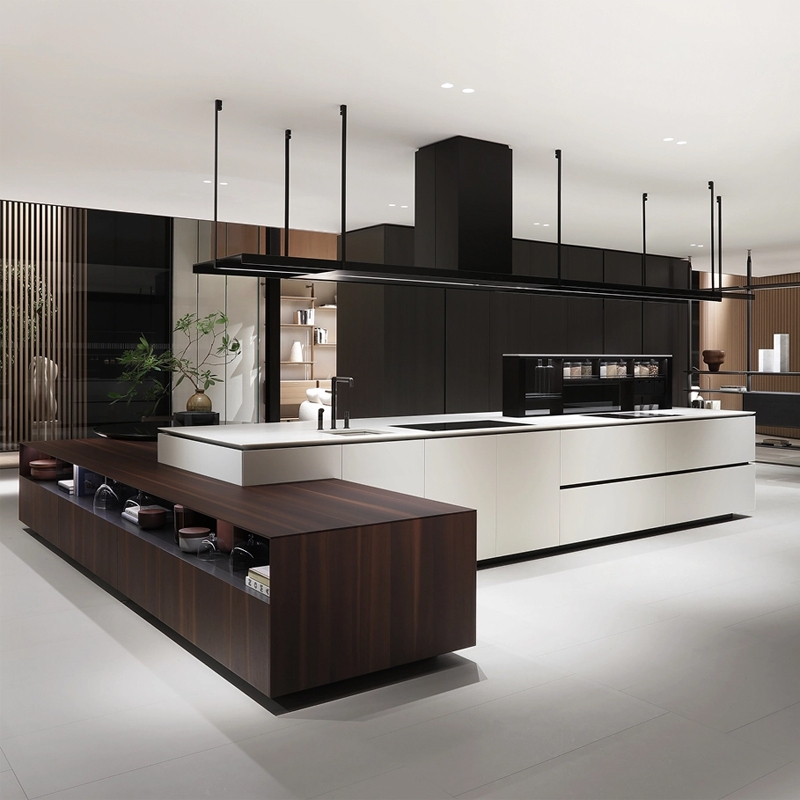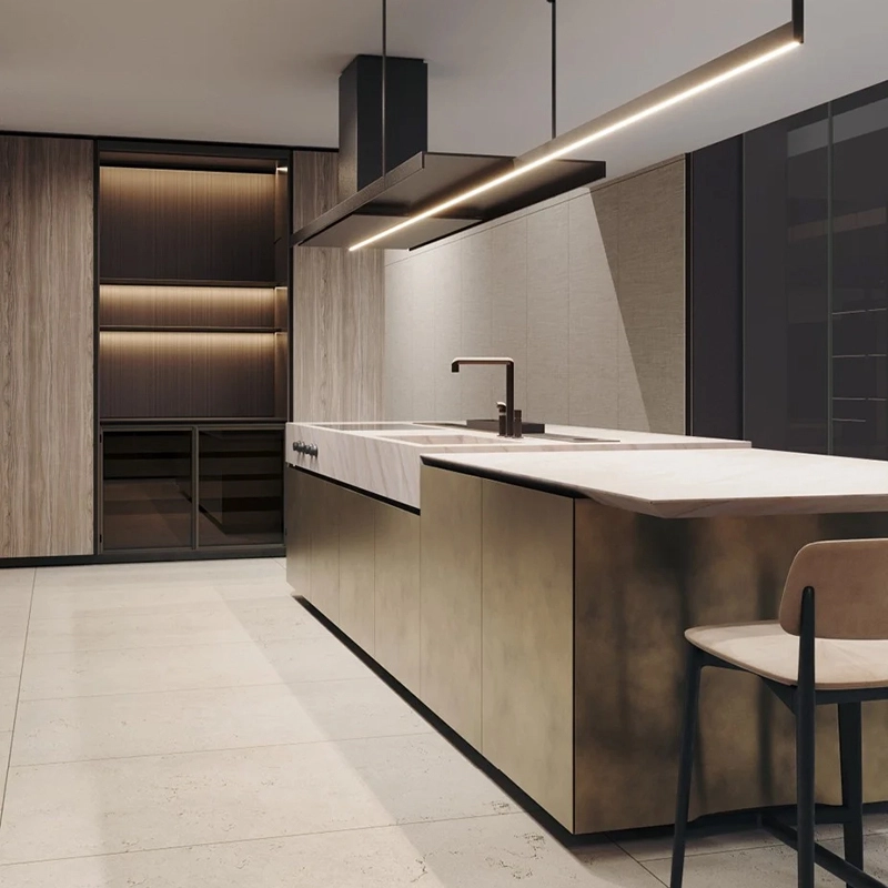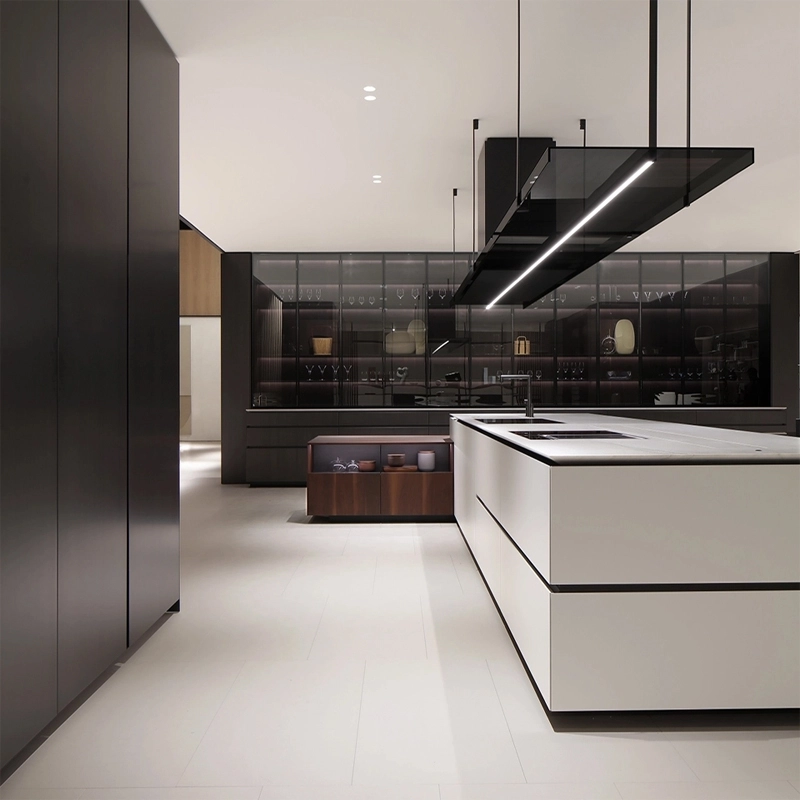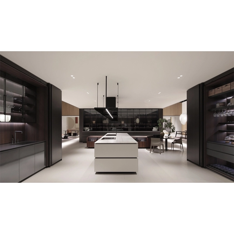Poliform reinterprets the Artex model by redefining the details in the light of a more contemporary and attractive aesthetic. And so Artex Pro was born, a kitchen with strong lines where the tapering is made sharper and deeper for greater lightness and where the top, more often than not, seems to float on the bases. Designed as a complete system capable of allowing the operational area to coexist with the dining area, Artex Pro is complemented by the namesake system of cupboards that intersect with the kitchen volumes.