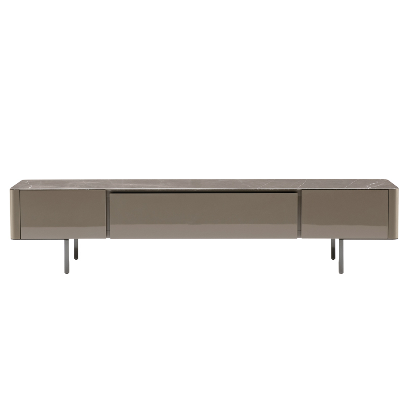 Minotti with the creativity of Christophe Delcourt, taking the circle as its starting point. Like an artist, the designer has deconstructed the form to investigate its expressive possibilities. Rounded and concave legs connected by a crosspiece define the base and enhance the overall design of the table. The contrasting finishes of the legs create an interesting play of light, illuminating the area underneath the tabletop – a space usually in the shade. The surround of the