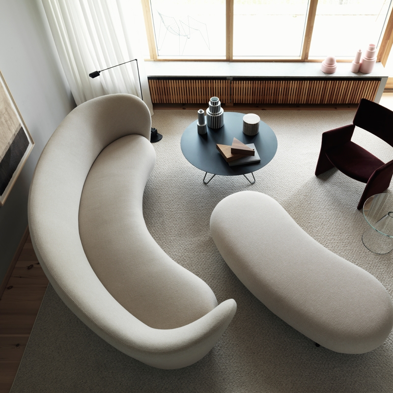Designed by Chris Martin for Massproductions, Dandy is an elegant and comfortable collection, which can be adapted to both public and private spaces. With its subtle lines and soft, seductive shapes, this sofa becomes the main element of the room, attracting all eyes. Available in a wide variety of fabrics, Massproductions' Dandy collection also includes an armchair, an ottoman and a two-seater sofa. Contact us for more information.