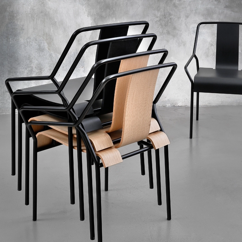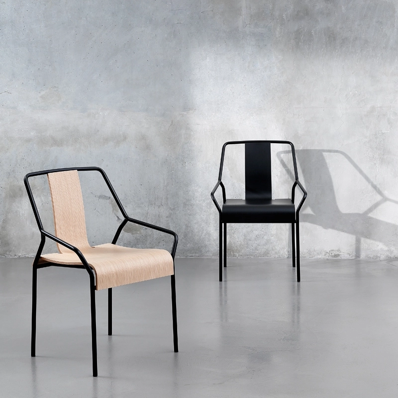 DAO is a small armchair with armrests designed by Shin Azumi for new French brand Coedition. Shin Azumi's design is characterised by clear and basic lines, seeking the perfect balance between idea, function and aesthetics. The DAO chair has a graphic structure in black lacquered metal. The oak veneer is moulded to create the seat and back in one piece. In natural oak or lacquered black, the DAO chair is perfect for an elegant dining room with a sober design.