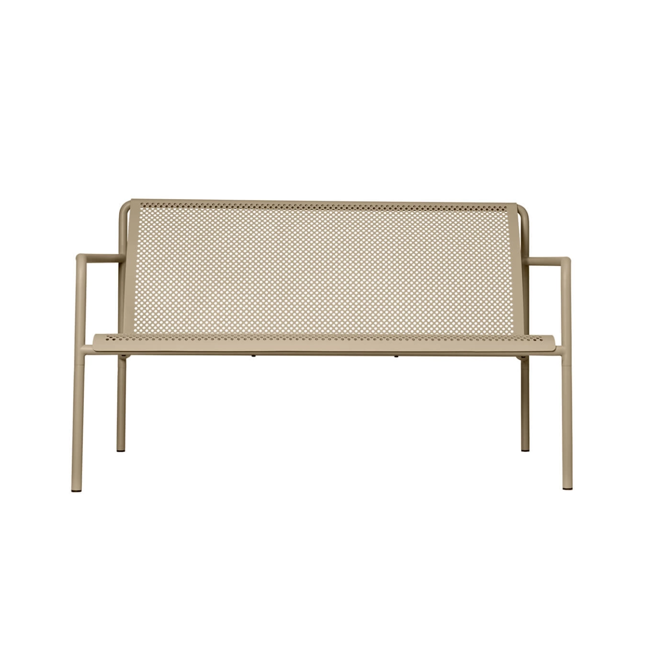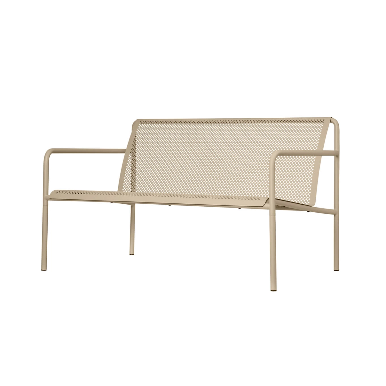 Inspired by the beauty of sunlight filtering through leaves, the Dapple sofa is a natural extension of Ferm Living's Dapple collection. Made from durable outdoor powder-coated electro-galvanized steel, the Dapple sofa is designed to withstand the elements while maintaining a refined, elegant aesthetic. Comfortable, Dapple features armrests and a generously sized seat, ideal for sharing moments on a balcony, terrace or garden. Its stackable design makes it highly practical and space-saving for outdoor use.