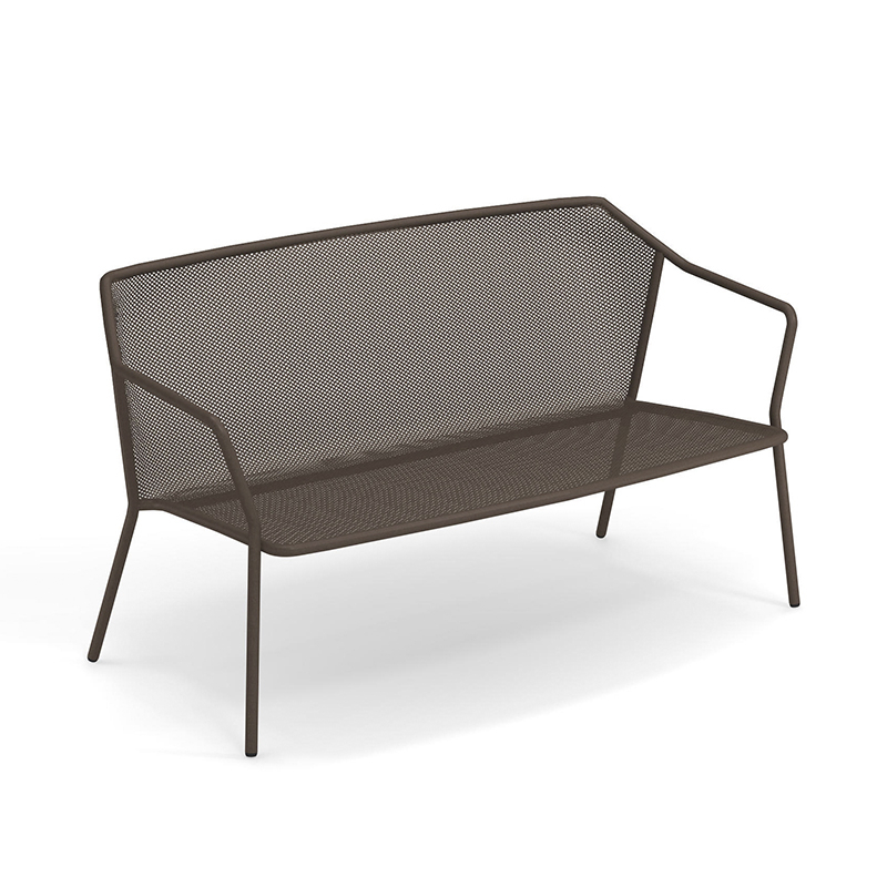 Darwin is a sofa with ergonomic proportions and light lines. Comfortable and functional, Darwin by Lucidi and Pevere for Emu is a collection of outdoor furniture in steel that evokes classic themes through a delicate sheet metal weave inserted into a structure with contemporary geometry. The texture of the seat and backrest is the distinctive feature of this collection's style, blending well with the lines of the structure. The Darwin outdoor sofa can be paired with armchairs from the same collection to create an elegant garden lounge.