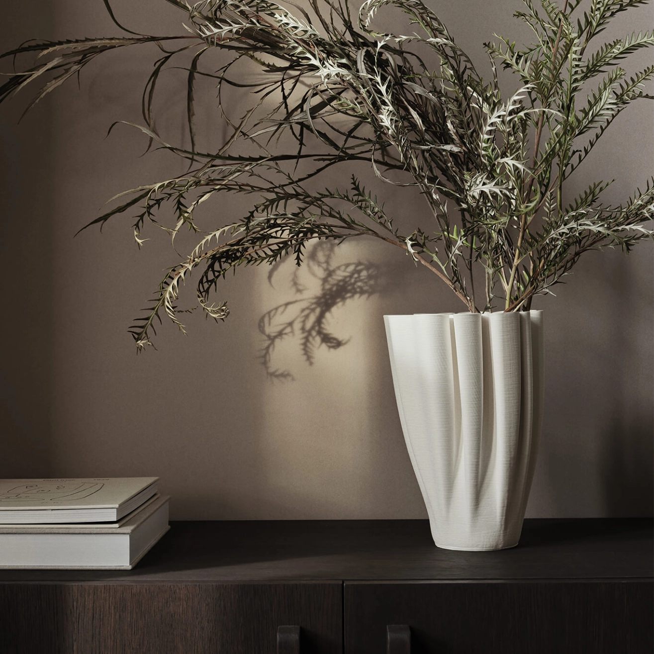 Echoing the intricate patterns of a maze, the Dedali vase by Ferm Living represents a fusion of art and utility. Made from 3D-printed ceramic, it features a maze-like upper section that is both aesthetic and functional. This thoughtful design allows for flower arrangements in a voluminous Ikebana style, creating balanced and sculptural compositions. The Dedali vase perfectly showcases Ferm Living’s ability to combine technological innovation with artistic expression to craft unique decorative pieces.