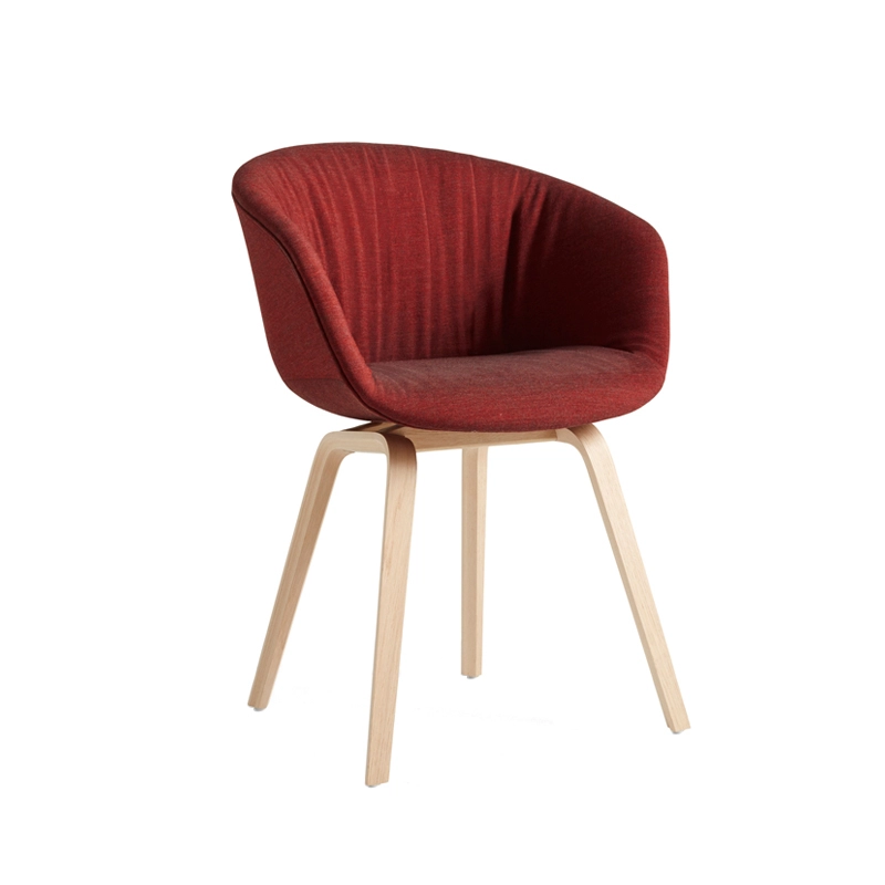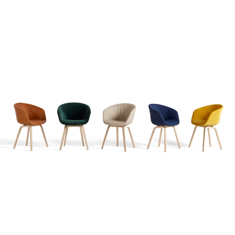 The chair About A Chair AAC 23 Soft by Hay offers functional simplicity and modern aesthetics, which are tempered by the softness and warmth of the quilted shell. Welcoming and soft, this version retains the same curved hull with the unified silhouette that characterises the entire collection, combined with a four-foot wooden base that adds a classic, timeless expression. The shell comes in a variety of upholstery options, offering a multitude of design combinations that give the AAC 23 Soft its versatility in a wide range of corporate, public and private settings.