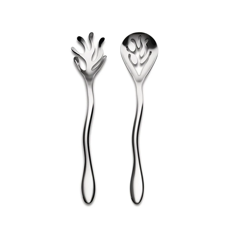 The Mediterraneo salad cutters, designed by Emma Silvestris in collaboration with Laura Polinoro and published by Alessi, stand out for their original appearance. Mediterraneo is a wide collection of home accessories whose design is inspired by the shape of aquatic plants. The Mediterraneo salad serversAlessi are highly functional for serving and add a touch of elegance to the table.
