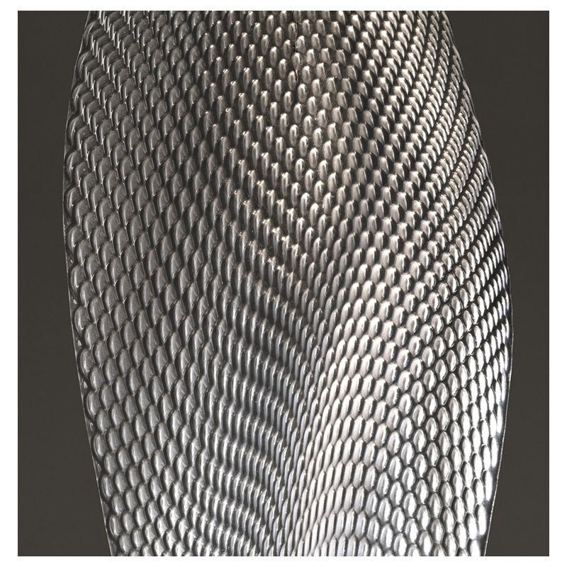 Cosmic Leaf was created by Ross Lovegrove for Artemide. The light in the metal base of the floor lamp is directed upwards. Inspired by plant life, the woven methacrylate diffuser produces diffused light. The shape and embossed design of the Cosmic Leaf catches the light beautifully. Both graceful and an impressive size, this floor lamp adapts perfectly to your interior to create a soft and poetic atmosphere in your living room or hallway.