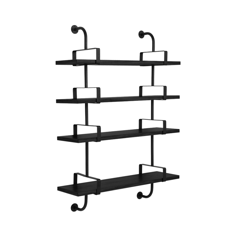 Designed in 1954 by Mathieu Matégot, Démon is a wall-mounted modular storage system. The series is distinguished by its ultra-graphic lacquered metal brackets, which hold very simple wooden boards. Reissued by the Gubi brand, Demon is available in various sizes and finishes. The Demon shelf by Gubi adapts to all homes and spaces, bringing a special dimension to wall storage.