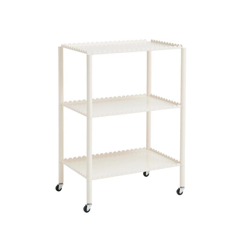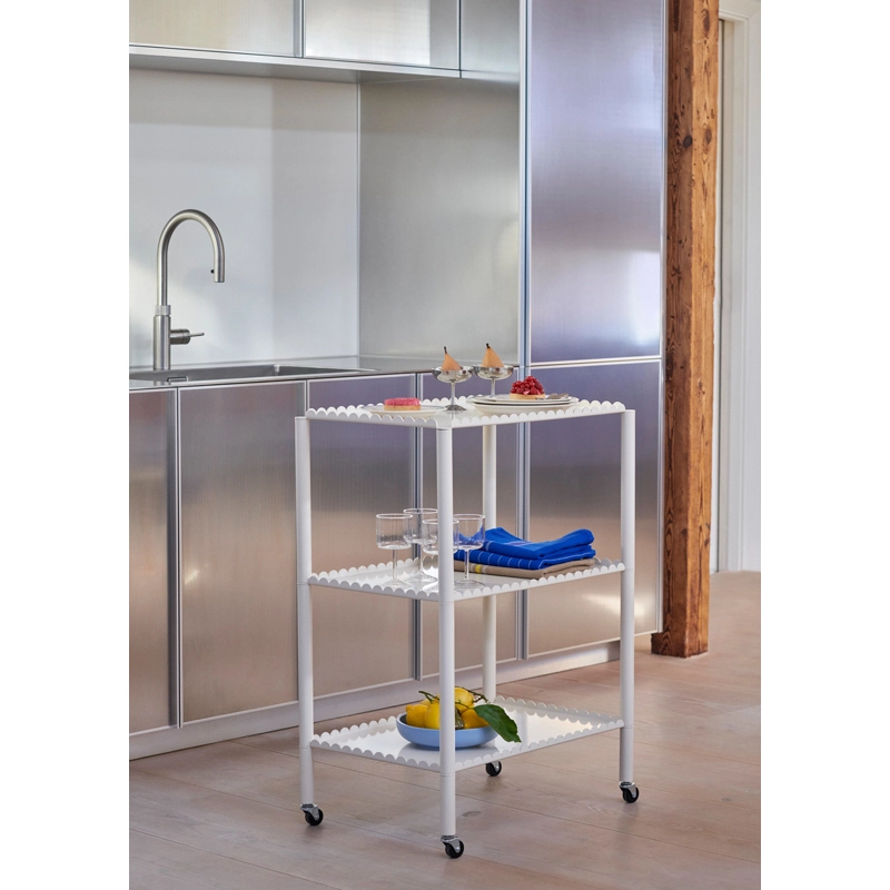 Designed by Belgian duo Muller Van Severen for Hay, the Arcs sideboard is a functional and decorative piece distinguished by a chain of vertical arches. A small piece of furniture with a strong presence, Arcs combines industrial techniques with poetic lines to create a unique, sculptural expression. The elegant, scalloped frame supports two or three trays, with slim castor-mounted feet for easy manoeuvring. Made from powder-coated steel in a range of colours, the Arcs dessert can be integrated into different rooms in the house: in the living room to display or store objects, in the kitchen to create extra storage, or even in the bedroom as a bedside table.