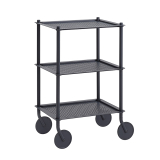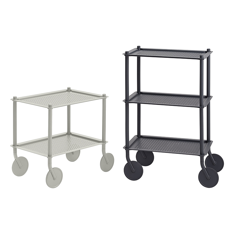 The Flow Trolley brings the concept of functional design into a modern context through its grooved trays in embossed metal for a contemporary expression, paired with the flexibility of its wheels that allow it to be moved from room to room. Designed in a monochrome look, the Flow trolley adds modern storage to any space in the home, workplace or hospitality.