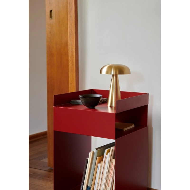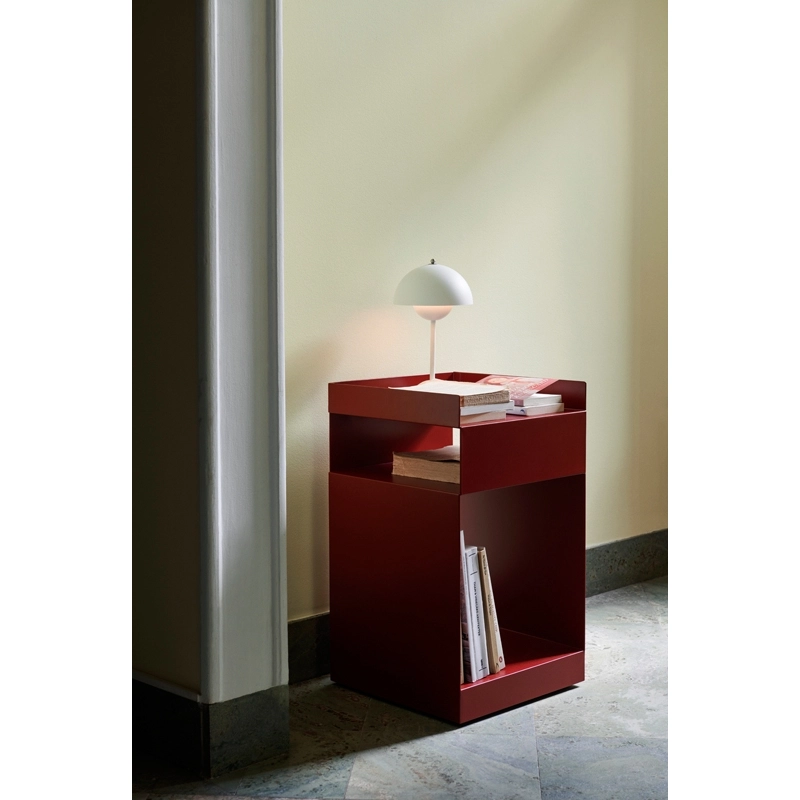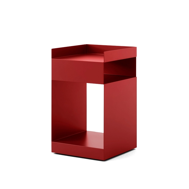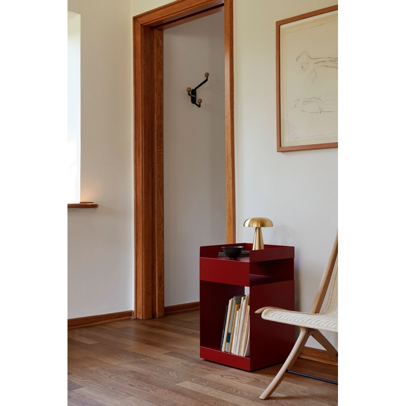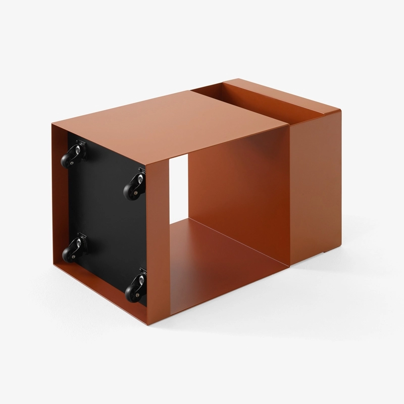 Designed by Space Copenhagen, Rotate is a versatile sideboard inspired by origami. The unpretentious appearance of Rotate contrasts with its highly functional design. Designed for a wide variety of applications - as desk storage, a bedside table or even a bathroom storage unit - this asymmetrical piece can be integrated into all kinds of spaces. To ensure maximum adaptability, Rotate is mounted on discreet castors, which make it easy to transport from one place to another. Made from a single piece of powder-coated steel, Rotate is cut into two pieces, which are then folded and welded together. The result is a room that has no front or back, but is accessible from all sides. This unusual design is inspired by origami, the Japanese art of folding, which transforms a sheet of paper into a complex volume. Edited by And Tradition, the desserte Rotate is available in various warm tones chosen to stand out in the space or blend in completely.
