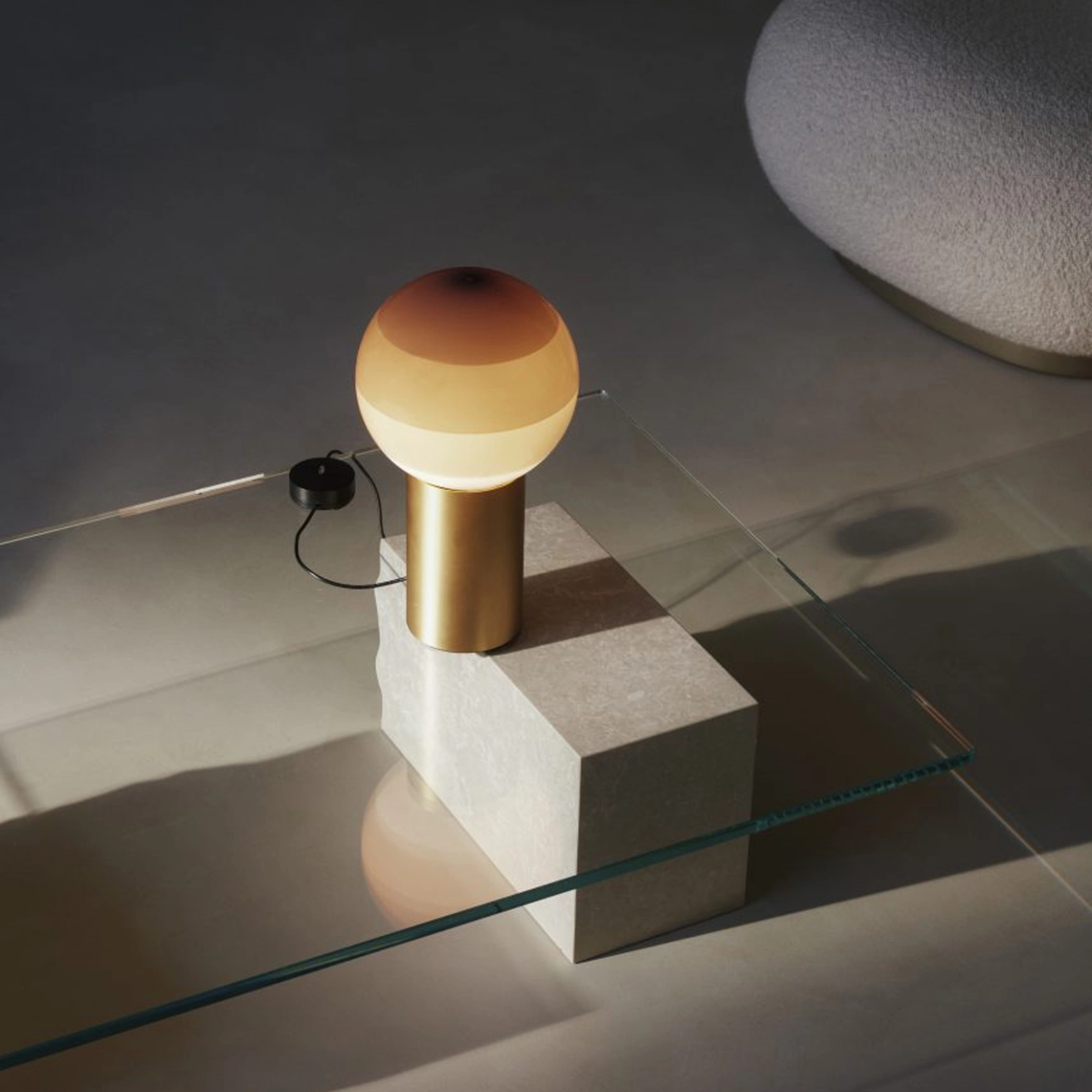More than a lamp, the Dipping Light invites the viewer to experience illumination as a sensory moment. Designed by Jordi Canudas and produced by Marset, the Dipping Light turns light itself into an evocative visual composition. When switched on, its successive layers of colour soften the brightness and create gentle halos that bathe the environment in a warm and captivating glow. When off, the Dipping Light becomes a refined sculptural object, its blown-glass sphere revealing a palette of expertly applied shades. This creation originates from an experimental approach by Jordi Canudas, who immersed a lit bulb into paint to observe the chromatic variations it produced. From this process emerged a lamp with a distinctive presence, defined by concentric rings of colour that capture and shape the light to give it a unique radiance. Because each layer is applied by hand, every Dipping Light carries its own character, making each piece truly singular. Set upon a precisely crafted brass base, the Dipping Light offers a harmonious interplay of materials, colours and luminosity. It fits naturally into living rooms, workspaces or bedside areas, bringing a refined artistic touch to any interior. Thanks to the expertise of Marset, this table lamp stands as a statement object that enhances everyday atmospheres with elegance and depth.