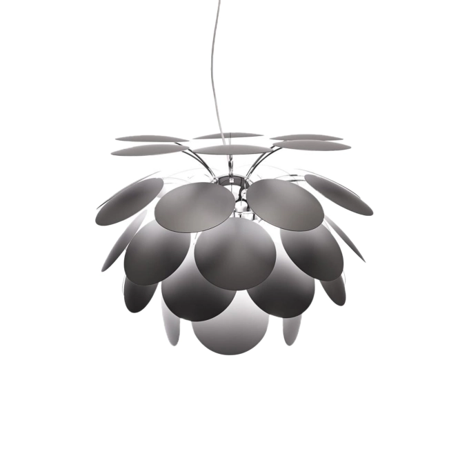 The Discoco 35 pendant lamp by Marset stands out as one of the brand’s most iconic creations, a sculptural piece that draws attention even when switched off. Designed to offer rich, layered lighting, this design pendant light combines direct downward illumination with a carefully crafted interplay of shadows and reflections, creating a lively and enveloping atmosphere in any interior. When the Discoco 35 is not illuminated, it becomes a decorative object in its own right, almost sculptural, capable of giving structure and character to any space. Its rounded shapes evoke rhythm and movement, revealing the meticulous work carried out on indirect lighting. This quality allows it to blend beautifully into living rooms, dining areas or bedrooms, wherever a warm, expressive and elegant atmosphere is desired. The Discoco 35 is therefore more than just a light. It is an expressive piece that embodies the expertise of Marset, a luminous object capable of transforming a room through its subtle modulation of light.