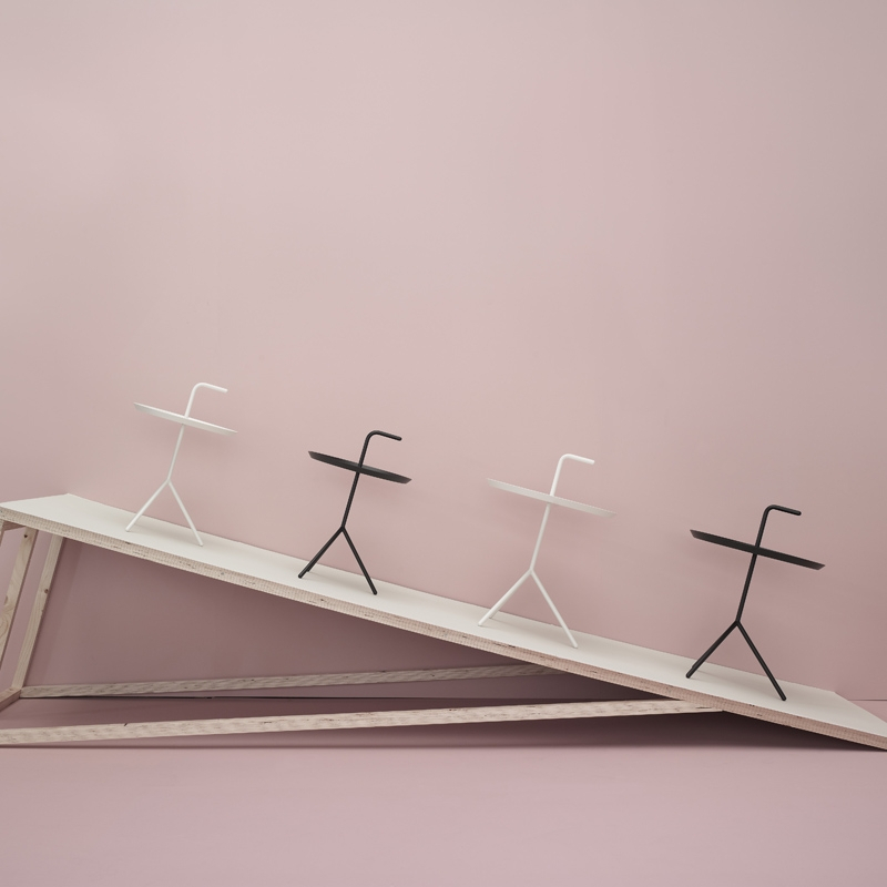 The idea behind the DLM (don't leave me) side table, with its handle on top, is obvious; it implicitly says 'take me with you'. This table to take with you is composed of a tray with legs and a handle so that you can move it around easily, whether you are inside or outside. It is an alternative to traditional coffee tables, which are often bulkier. It's a fun table for a modern lifestyle. Created by Thomas Bentzen for Hay, DLM comes in two sizes and a wide variety of colours to suit your desires.
