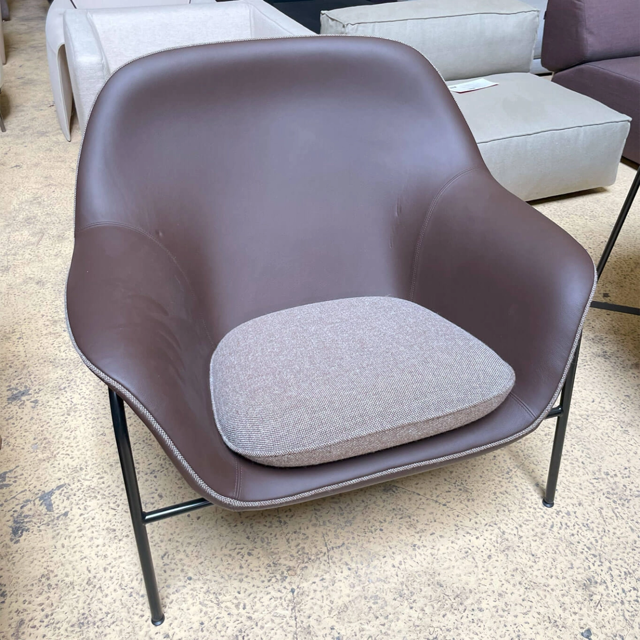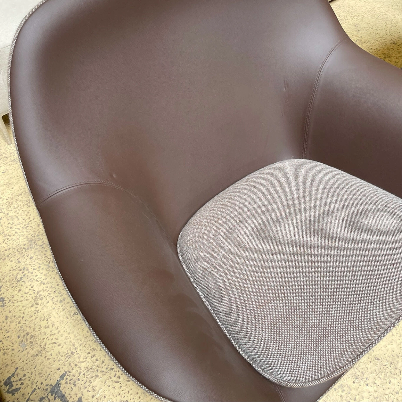 The pre-owned Drape chair, designed by Simon Legald for the brand Normann Copenhagen, is an uncompromising design where comfort and aesthetics perfectly meet. Its hard molded PU foam shell, reinforced with a steel frame, ensures stability and durability, while the soft molded PU foam seat conforms to the body’s contours for optimal comfort, ideal for relaxation and leisure. The pre-owned Drape chair can be customized down to the smallest detail with piping that matches the chosen upholstery. The oak wooden legs of the collection, FSC certified and sourced responsibly, are available lacquered or painted, providing an elegant and durable finish to this refined design.