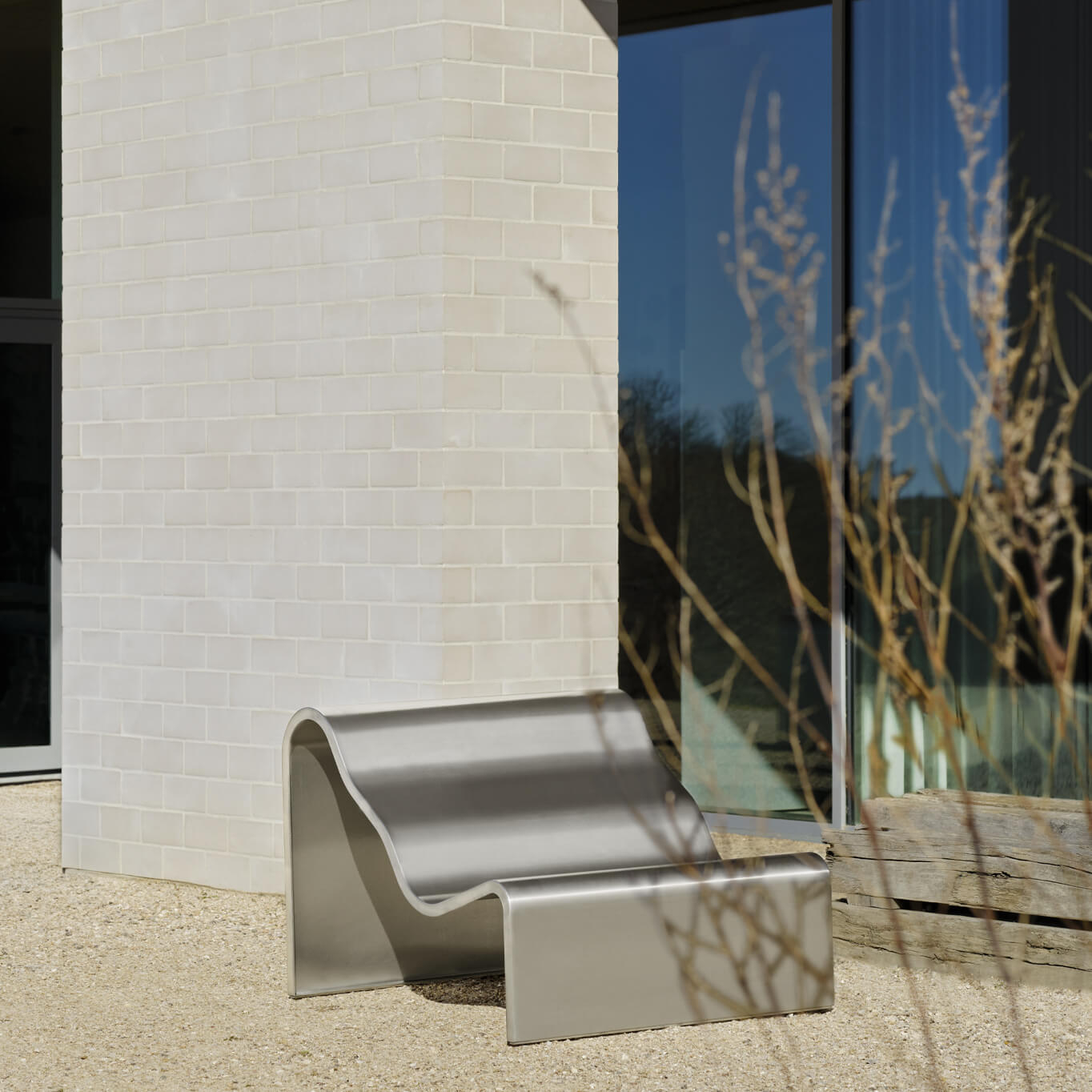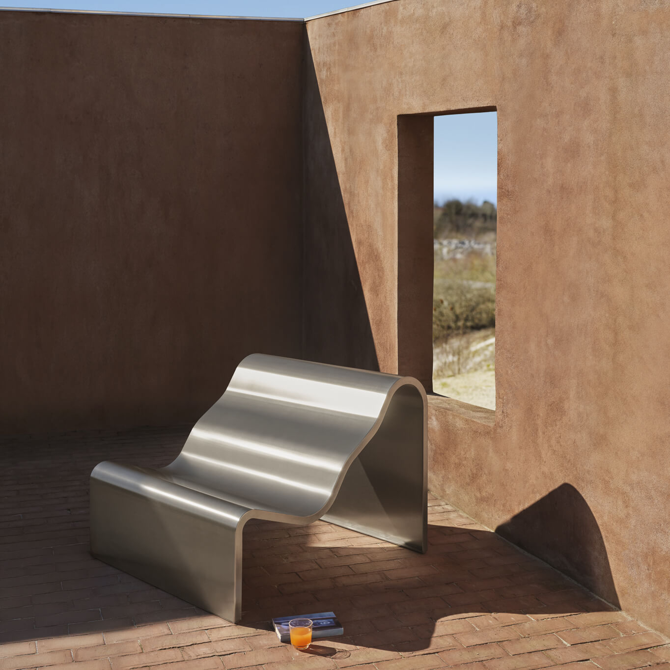 The Dream bench by Muuto is a seat that goes beyond the simple function of a bench. Conceived as an invitation to look up and slow down, it offers a rare contemplative experience within design furniture. Its fluid and organic silhouette naturally follows the body’s shape, providing a relaxed posture that encourages lying back and drifting into reverie. Crafted from polished stainless steel, Dream subtly reflects the light and nuances of its surroundings, creating a shifting visual play throughout the day. This material, both robust and refined, highlights the balance between strength and softness that defines the piece. Available in single or double versions, the Dream bench by Muuto fits seamlessly into both intimate and shared spaces, transforming every pause into a moment of escape. More than a functional object, it becomes a support for imagination, a meeting point between Scandinavian design and the art of contemplation.