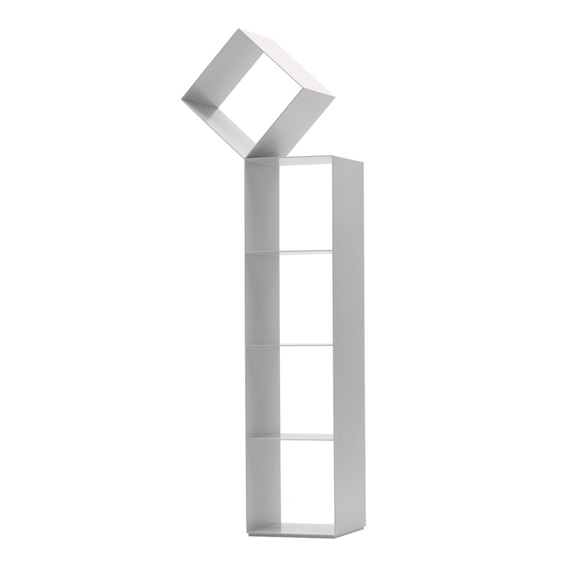 Designed by Nendo, Drop is a collection of open shelves available in several sizes and colours to suit all styles and needs. Produced by Cappellini, this designer storage furniture is made of laser-cut metal and lacquered in understated colours. The originality of this piece lies in its studious use of a range of colours inspired by natural elements reminiscent of Japan, from the pink of cherry blossom to the warm grey of stream stones. The distinguishing feature of the Drop storage units is the cube that seems to be balancing on top, which gives a sculptural feel to these shelves, typical of Nendo's clean-lined and meticulous design style.