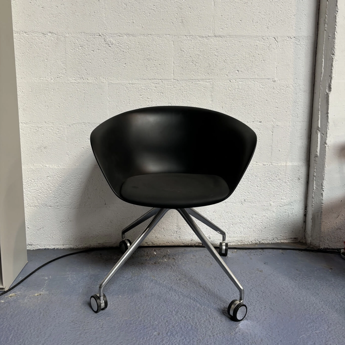 The Duna armchair by Arper is a true icon of contemporary design, combining visual lightness with enveloping comfort. Designed by Lievore Altherr Molina, the Duna captivates with its organic, flowing form, inspired by the natural curves of landscapes. This pre-owned armchair retains all the quality and craftsmanship characteristic of Arper, thanks to impeccable finishes and durable materials. The Duna stands out with its soft and welcoming seat, supported by an elegant wheeled base that provides mobility and practicality without compromising its airy appearance. Its timeless design makes it ideal for both a living room and a workspace or reception area. True to the spirit of Arper, this armchair combines aesthetics, comfort, and functionality in perfect harmony, offering a seating experience that is as refined as it is contemporary.