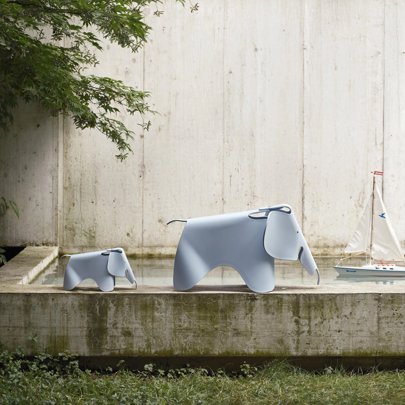 In 1945, Charles and Ray Eames imagined a plywood elephant, originally designed as a children’s toy but never mass-produced. Today, Vitra is re-releasing this iconic plastic model, making this object both playful and decorative accessible to all. TheEames Elephant can be used as a toy, including outdoors, or as an object of playful decoration whether for a child’s room or in any other space of the house. Children can climb on this animal, with its touching gaze and its large ears, it invites both play and tenderness. It is now available in recycled and recyclable plastic sourced from industrial waste.
