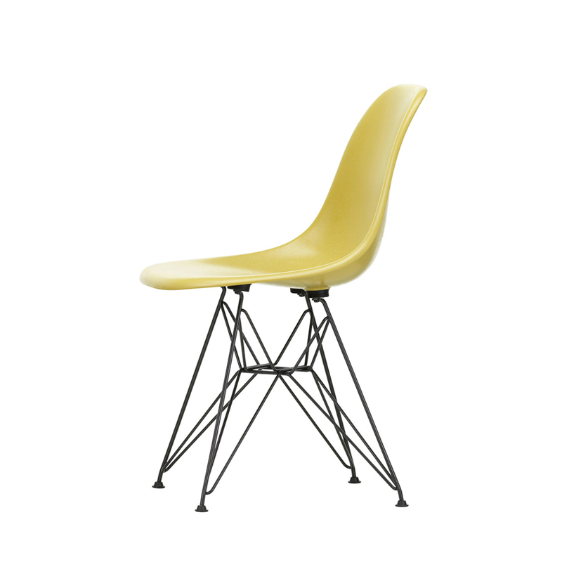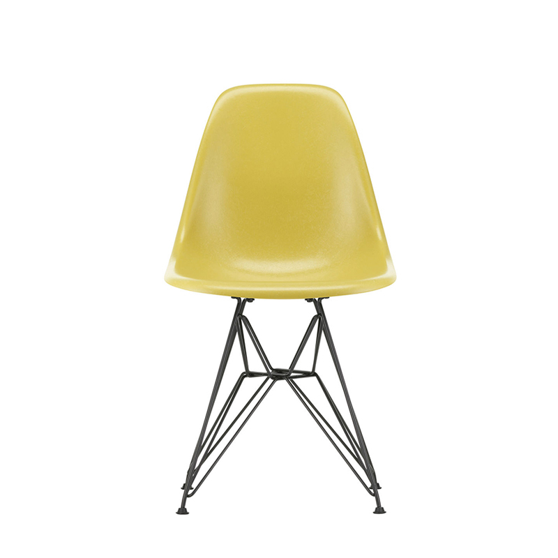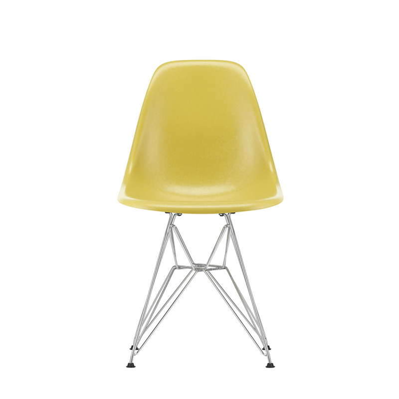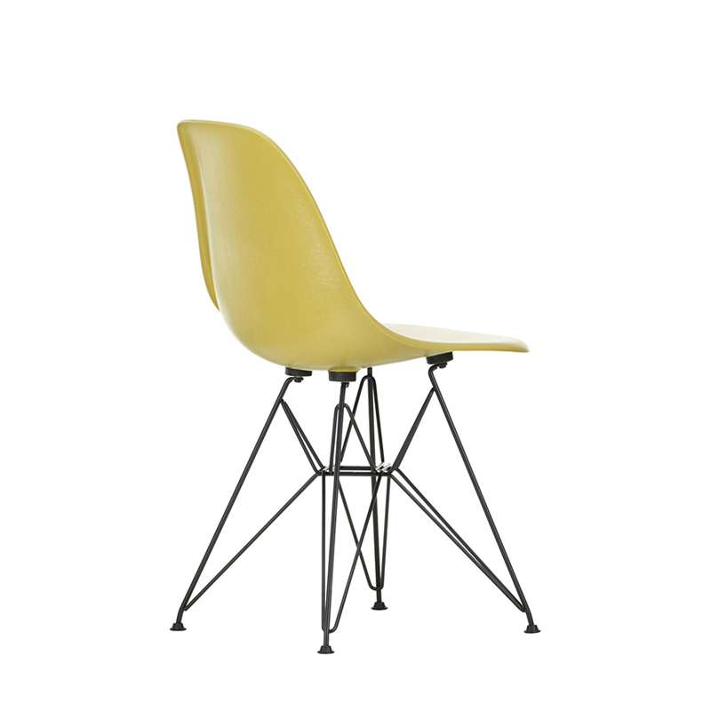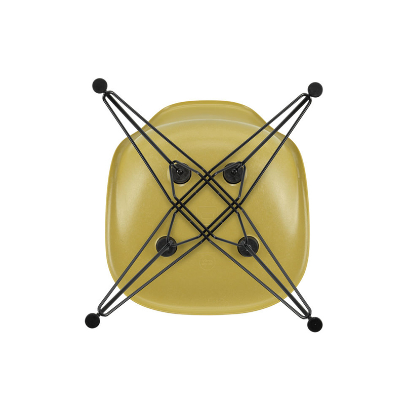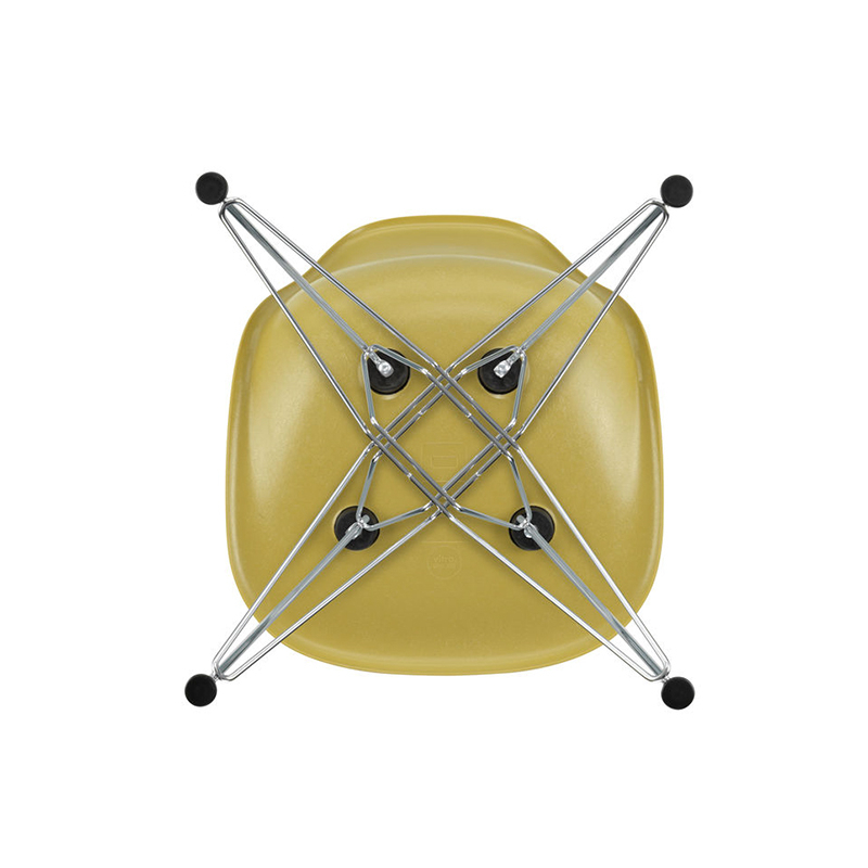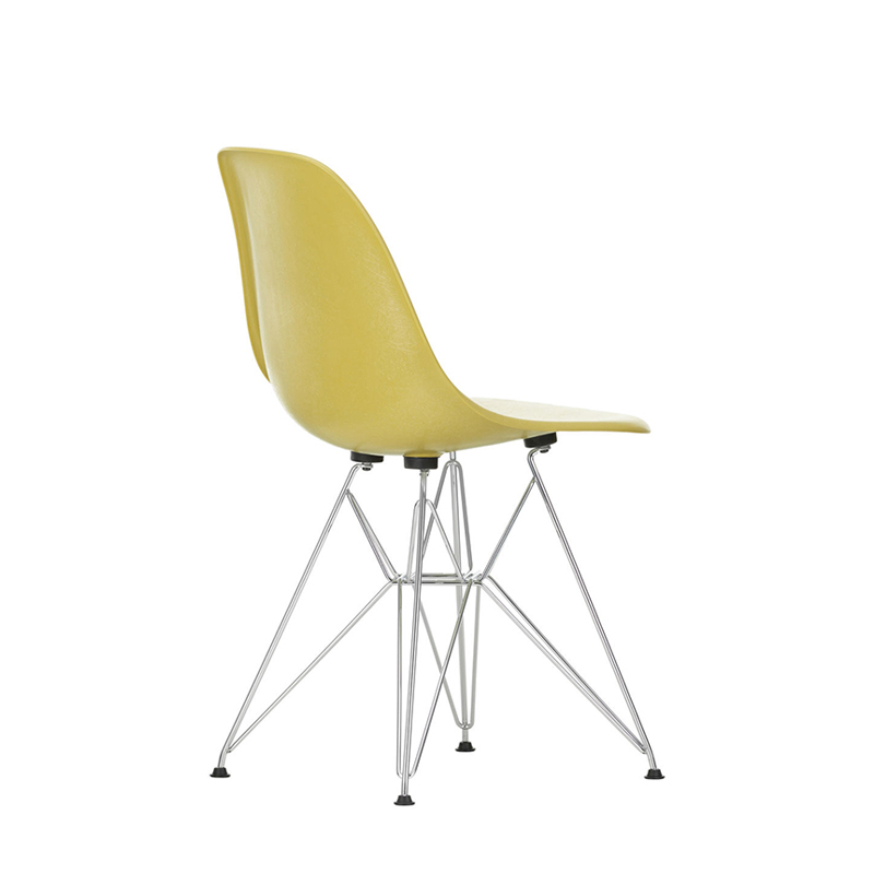 Eames Fiberglass Vitra Chair stand out for the characteristic irregular surface of the fibreglass, which appears almost like a natural material thanks to its clearly visible fibres. Its hulls rest on the superb Eiffel chrome-plated lattice structure. A rubber fastener is fitted under the seat for optimum comfort. The
