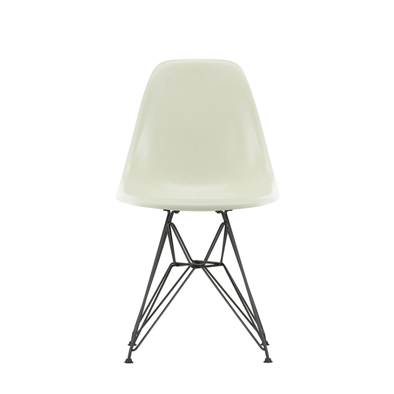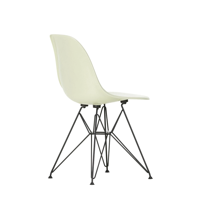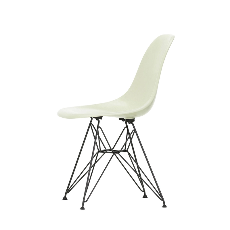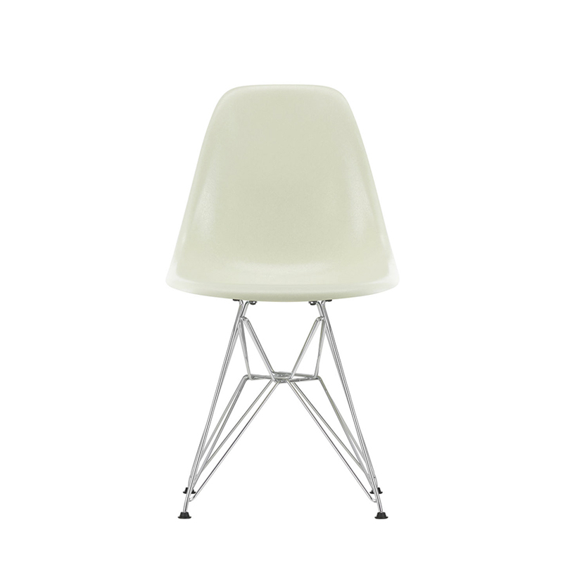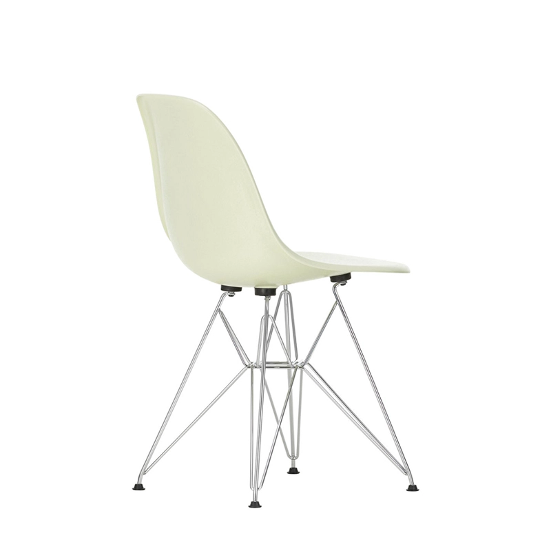 Eames Fiberglass Vitra Chair stand out for the characteristic irregular surface of the fibreglass, which appears almost like a natural material thanks to its clearly visible fibres. Its hulls rest on the superb Eiffel chrome-plated lattice structure. A rubber fastener is fitted under the seat for optimum comfort. The