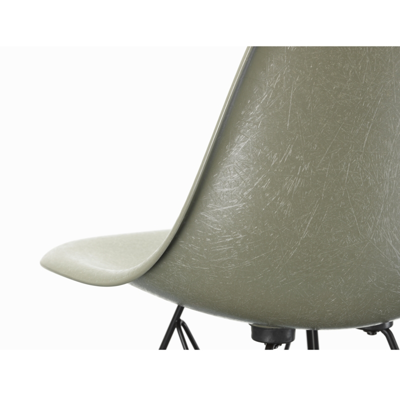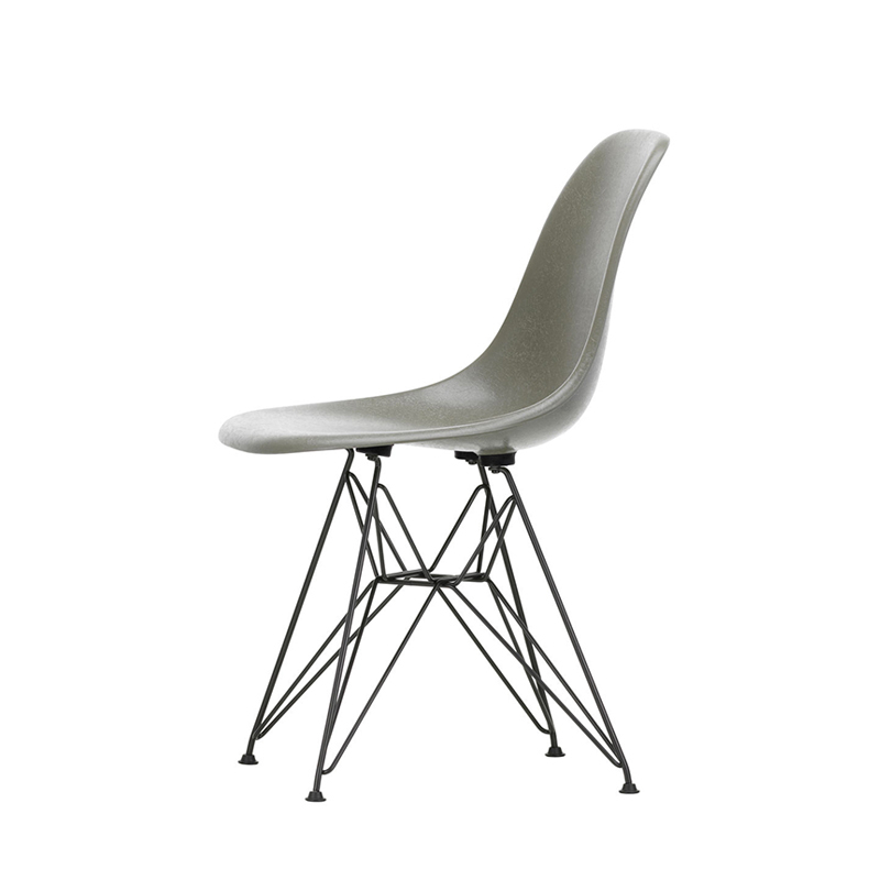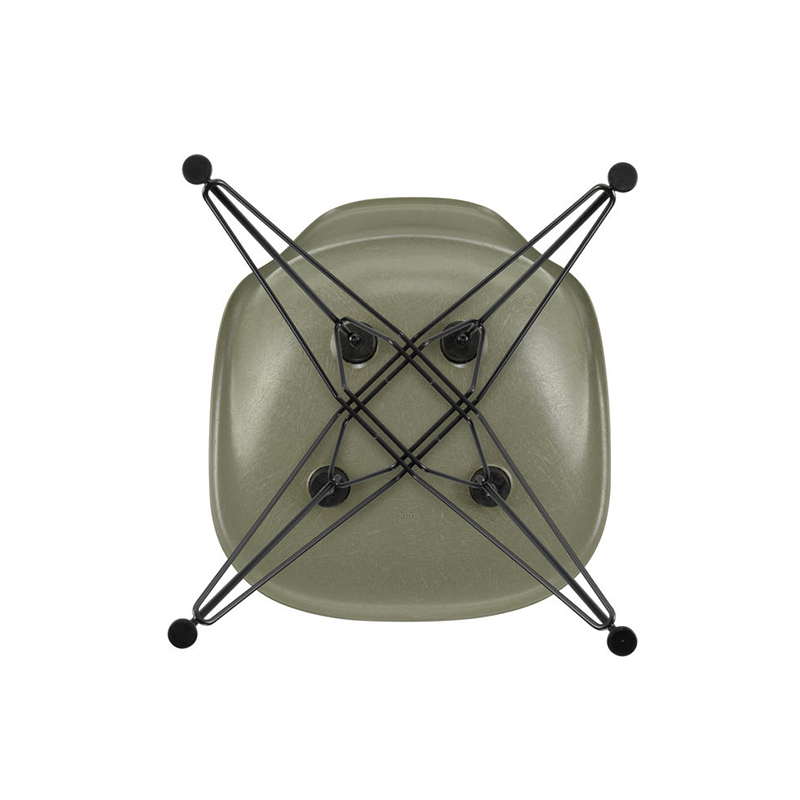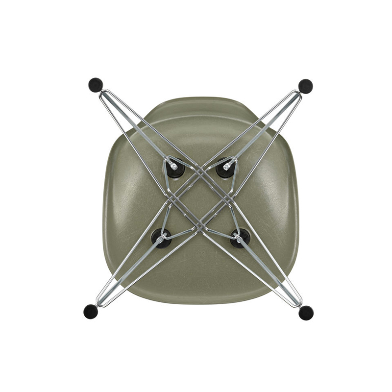Eames Fiberglass Vitra Chair stand out for the characteristic irregular surface of the fibreglass, which appears almost like a natural material thanks to its clearly visible fibres. Its hulls rest on the superb Eiffel chrome-plated lattice structure. A rubber fastener is fitted under the seat for optimum comfort. The